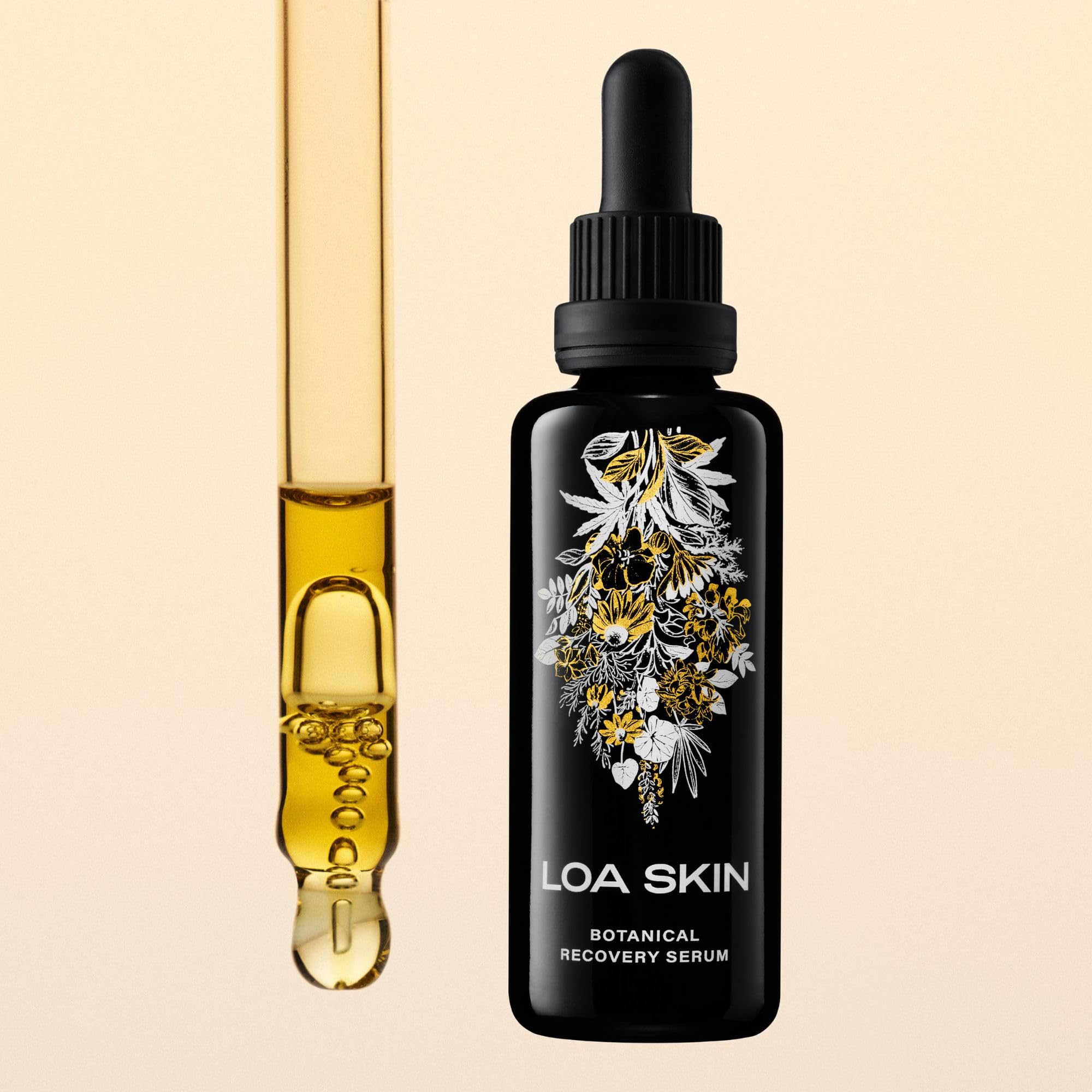Botanical Recovery Serum is a lightweight oil-moisturizer for all skin types, featuring 15 different botanicals for long-lasting moisturization.