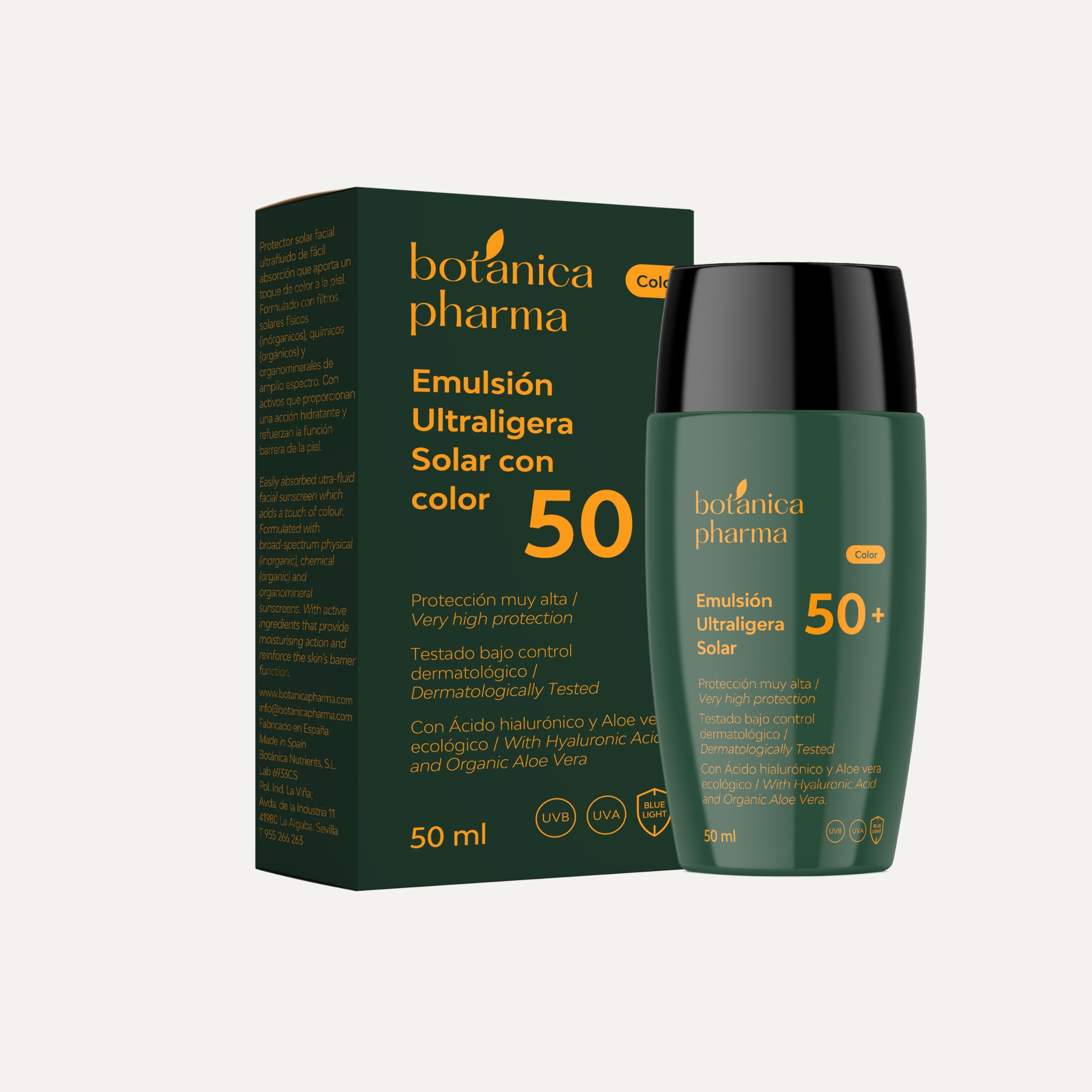 Botanicapharma Émulsion solaire ultra-légère colorée, SPF50 , 50 ml, action hydratante et renforçant la fonction barrière de la peau, texture ultra légère