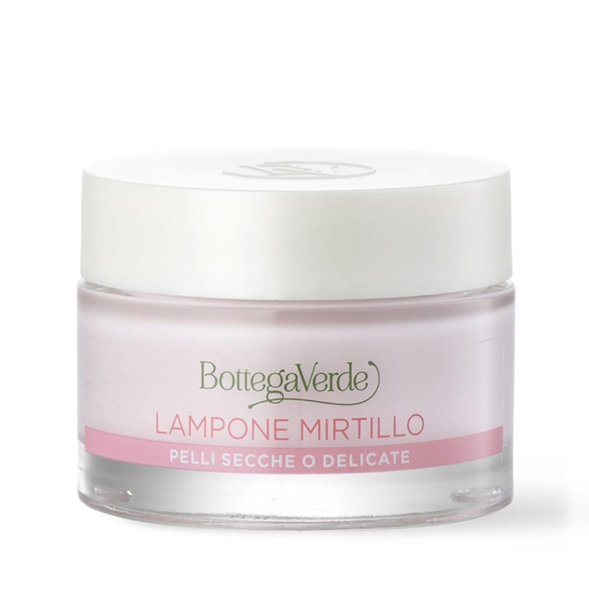 Raspberry Blueberry Face Cream: A moisturizing face cream for dry or delicate skin. Provides deep nourishment and hydration. Formulation: This rich, vegan cream, with 95 naturally derived ingredients, delivers hydration thanks to blueberry and raspberry pulp. Directions: Apply the cream daily to the face with gentle upward and outward motions until fully absorbed, avoiding the eye area. Bottega Verde's "Beauty Extracts" line: A face and body range that selects the finest natural ingredients to purify and hydrate with vitamins and the fragrances of fruits, flowers, and vegetables. INGREDIENTS AQUA, CETEARYL ALCOHOL, GLYCERIN, OCTYLDODECANOL, OLIVOYL HYDROLYZED WHEAT PROTEIN, LIMNANTHES ALBA SEED OIL, CETYL PALMIITATE, GLYCERYL OLEATE, GLYCERYL STEARATE, SOYBEAN GLYCERIDES, DIMETHICONE, Parfum, hydraulic GENATED ETHYLHEXYL OLIVATE, GLYCERYL GLUCOSIDE, HYDROXYACETOPHENONE, THEOBROMA CACAO SEED BUTTER, BUTYROSPERMUM PARKII BUTTER UNSAPONIFIABLES, RUBUS IDAEUS JUICE, VACCINIUM MYRTILLUS LEAF EXTRACT, SODIUM POLYACRYLIC LATE, PHENYLPROPANOL, XANTHAN GUM, PROPANEDIOL, CAPRYLYL GLYCOL, POTASSIUM HYDROXIDE, Hydrogenated Olive Oil Unsaponifiables, Sodium Phytate, Sodium Benzoate, Potassium Sorbate, Lecithin, Citric Acid, Benzyl Salicylate, Linalool, Tocopherol, Hexyl Cinnamal, Ascorbyl Palmitate, Citronellol, Alpha-Isomethyl Ione, Citronene, Geraniol, Citral, Salicylic Acid, CI 17200 Safety Warning Always read the label, warnings, and instructions provided on the product before use. See moreNatural secret: raspberry and blueberry pulp. Fragrance: fresh, fruity, floral, amber notes. Characteristics: rich moisturizing cream – raspberry and blueberry – for dry or delicate skin. Choose it if you want to restore nourishment and softness to your skin. Particularly rich and luxurious, it immediately provides a feeling of relief to dry and delicate skin.Crème riche hydratante Framboise et myrtille: hydrate protège, pour les peaux sèches ou délicatesDESCRIPTION DU PRODUIT DESCRIPTION DU PRODUIT Crème visage framboise myrtille : crème visage hydratante pour peau sèche ou délicate. Assure une nutrition et une hydratation profonde de la peau. Formulation : crème à la texture riche, végétalienne et avec 95 d'ingrédients d'origine naturelle, qui apporte hydratation grâce à la pulpe de myrtille et de framboise. Mode d'emploi : appliquez quotidiennement la crème sur la peau du visage avec des mouvements doux du bas vers le haut et du centre vers les côtés jusqu'à absorption complète en évitant la zone contour des yeux. Ligne « Extraits de beauté » de Bottega Verde : gamme visage et corps qui sélectionne les meilleurs ingrédients naturels pour purifier et hydrater avec les vitamines et les parfums de fruits, fleurs et légumes. INGRÉDIENTS AQUA, CETEARYL ALCOHOL, GLYCERIN, OCTYLDODECANOL, OLIVOYL HYDROLYZED WHEAT PROTEIN, LIMNANTHES ALBA SEED OIL, CETYL PALMIITATE, GLYCERYL OLEATE, GLYCERYL STEARATE, SOYBEAN GLYCERIDES, DIMETHICONE, Parfum, hydraulique GENATED ETHYLHEXYL OLIVATE, GLYCERYL GLUCOSIDE, HYDROXYACETOPHENONE, THEOBROMA CACAO SEED BUTTER, BUTYROSPERMUM PARKII BUTTER UNSAPONIFIABLES, RUBUS IDAEUS JUICE, VACCINIUM MYRTILLUS LEAF EXTRACT, SODIUM POLYACRYLIQUE LATE, PHENYLPROPANOL, XANTHAN GUM, PROPANEDIOL, CAPRYLYL GLYCOL, POTASSIUM HYDROXIDE, HYDROGENATED OLIVE OIL UNSAPONIFIABLES, SODIUM PHYTATE, SODIUM benzoate, POTASSIUM SORBATE, LECITHIN, CITRIC ACID, BENZYL SALICYLATATE, E, LINALOOLOL. , TOCOPHEROL, HEXYL CINNAMAL, ASCORBYL PALMITATE, CITRONELLOL, ALPHA-ISOMETHYL IONE, CITMONENE, GERANIOL, CITRAL, SALICYLIC ACID, CI 17200 AVERTISSEMENT DE SÉCURITÉ Veuillez toujours lire l'étiquette, les avertissements et les instructions fournies sur le produit avant de l'utiliser Voir plusSecret naturel : pulpe de framboise et de myrtille. Parfum : note fraîche, fruitée, florale, ambrée. Caractéristiques : crème riche hydratante – framboise et myrtille – peaux sèches ou délicates. Choisissez-le si vous voulez redonner nutriment et douceur à votre peau. Particulièrement riche et généreuse, elle apporte immédiatement une sensation de soulagement à la peau sèche et délicate.