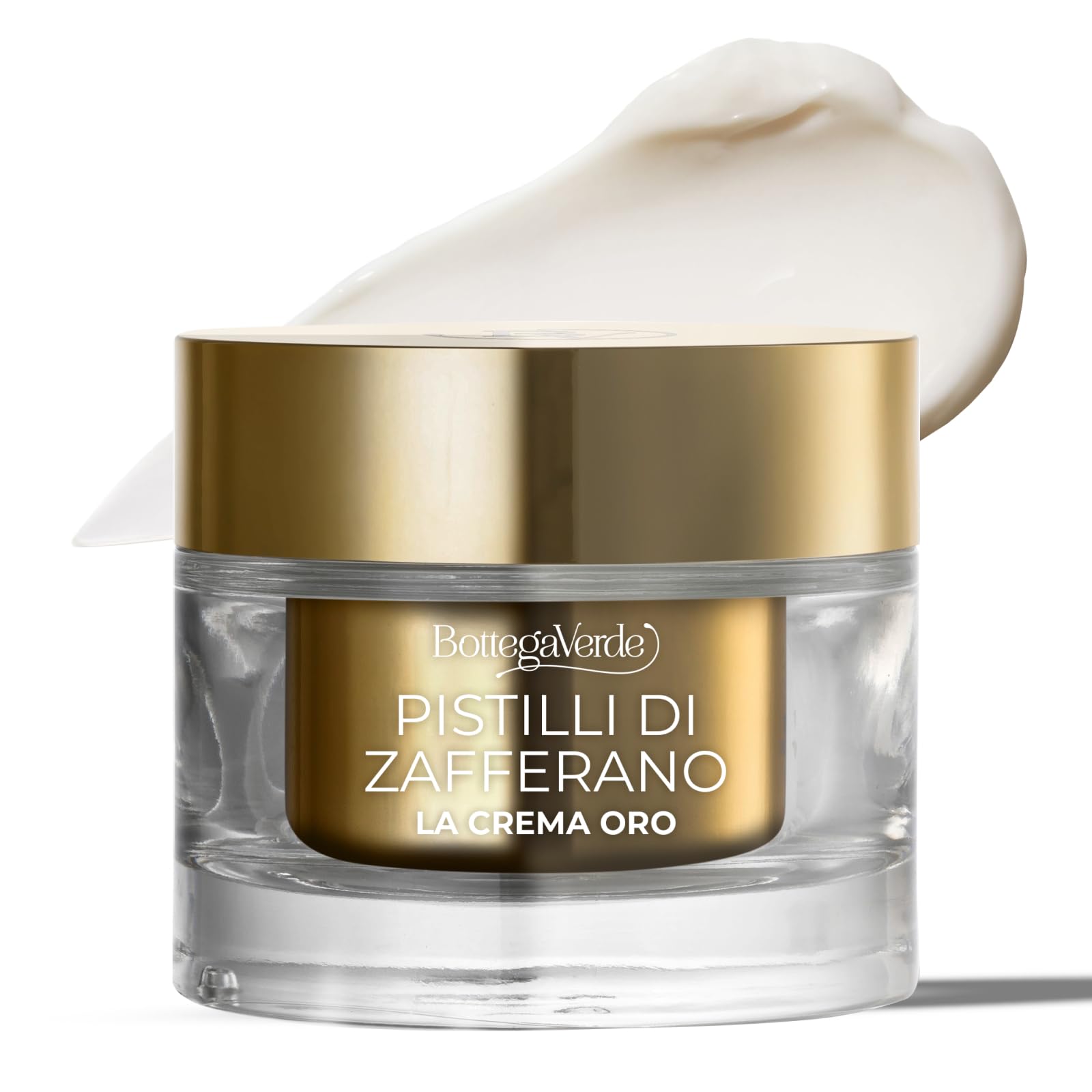Anti-Wrinkle Face Cream, Green Buttoned Backpack Bottega Verde's Safran Anti-Wrinkle Face Cream visibly combats the signs of aging. The exclusive formula with hyperfermented saffron and ceramides reduces wrinkles after 6 weeks of use, as proven by our instrumental clinical tests. Comprehensive anti-aging action. Saffron, a precious antioxidant ingredient, works in synergy with ceramides to smooth wrinkles and improve skin elasticity. Skin appears immediately brighter, firmer, and more elastic from the very first applications. Application and results Apply morning and evening in circular motions to a perfectly cleansed face and neck. For optimal results, use the entire Safran line, which includes a serum and a specific eye cream. Italian excellence from Bottega Verde Since 1972, in our Tuscan estate, we have cultivated high-quality botanical ingredients. Every Bottega Verde product combines Italian herbalist tradition with advanced scientific research, offering effective, natural, and dermatologically tested formulas. INGREDIENTS Aqua, C15-19 ALKANE, GLYCERIN, SIMMONDSIA CHINENSIS SEED OIL, CANOLA OIL, LIMNANTHES ALBA SEED OIL, OCTYLDODECANOL, POTASSIUM CETYL PHOSPHATE, OLUS OIL, PENTYLENE GLYCOL, GLYCERYL STEARATE, YL ALCOHOLS OL, HYDROGENATED PALM GLYCERIDES, SOYBEAN GLYCERIDES, SYNTHETIC FLUORPHLOGOPITE, HYDROXYACETOPHENONE, PULLULAN, NANNOCHLOROPSIS OCULATA EXTRACT, CROCUS SATIVUS FLOWER EXTRACT, CERAMIDE NP, CHOLESTEROL, CERAMIEROL, CERAMIEROL, CERAMIEROL, CERAMIEROL, CERAMILIEROL, CERAMIIDE AP, PHYE. Tosphingosine, Cross Sativus Stigma Extract, Ceramides EOP, 1,2-HEXANEDIOL, CAPRYLYL GLYCOL, CI 77891, PARFUM, HYDROGENATED VEGETABLE OIL, BUTYROSPERMUM PARKII BUTTER UNSAPONIFIABLES, JOJOBA ESTERS, HELIANTHANE US ANNUUS SE. ED WAX, ACACIA SENEGAL GUM, DISODIUM EDTA, ACRYLATES C10-30 ALKYL ACRYLATE CROSSPOLYMER, CANDLE WAX, SODIUM POLYACRYLATE, POLYGLYCERYL-10 STEARATE, XANTHAN GUM, SODIUM HYDROXIDE, HEXYL CINNAMAL, TRIETHYL Cirates, TEE TRAMETHYL ACETYLOCTAHYDRONAPHTHALENES, LINALYL ACETATE, POLYGLYCERYL-6 BEHENATE, TIN OXIDE, LINALOOL, ACACIA DECURRENS FLOWER WAX, SACCHAROMYCES FERMENT FILTERED LYSATE, POLYGLYCERIN-3, LIMONENE, GERANIOL, SODIUM LEVUL. INATE, BEHENIC ACID, CITRIC ACID, POTASSIUM SORBATE, PINENE, BENZALDEHYDE, GEANYL ACETATE, COUMARIN, SODIUM CETEARYL SULFATE, PELARGONIUM GRAVEOLENS OIL DIRECTIONS FOR USE Directions: Apply the cream with your fingertips using gentle, upward strokes from the bottom of the face and outwards. This application method, combined with the use of the cream, helps maintain the skin in optimal condition. SAFETY WARNING Always read the label, warnings, and instructions provided on the product before use. See moreBottega Vert's Pistilli Saffron Line: an anti-wrinkle and anti-aging face care line that helps maintain vibrant, protected skin day and night, thanks to the properties of saffron, known for its anti-aging benefits, and ceramides, which improve skin elasticity and hydration, combating the signs of aging. Directions: After cleansing, apply the cream to the face and neck with your fingertips, gently massaging in upward and outward motions. Use morning and evening for optimal results. Formulation: This cream is enriched with 96 naturally derived ingredients, plant ceramides, and hyperfermented saffron extract, which works deep within the skin with 10 actions, improving hydration, elasticity, and radiance. Size: 1 Pistilli Saffron Cream, Gold Cream, Day and Night Face Treatment, 50 ml. Saffron pistils, the gold cream, day and night face cream: global anti-wrinkle and anti-aging cream, enriched with ceramic and hyper-fermented saffron extract, helps improve skin elasticity, hydration and radiance, for a visibly younger face.Bottega Verde - Pistilli de Safran, Crème Or, Crème Visage Jour et Nuit, 50ml, Anti-rides et Anti-Âge Global, avec Céramides et Extrait Iperfementé de Safran, pour Tous les Types de PeauDESCRIPTION DU PRODUIT DESCRIPTION DU PRODUIT Crème visage anti-rides, sac à dos boutonnée vert La crème visage anti-rides Safran de Bottega Verde combat visiblement les signes du vieillissement. La formule exclusive au safran hyperfermenté et céramides réduit les rides après 6 semaines d'utilisation, comme l'ont prouvé nos tests cliniques instrumentales. Action anti-âge globale. Le safran, précieux ingrédient anti-oxydant, travaille en synergie avec les céramides pour lisser les rides et améliorer l'élasticité cutanée. La peau apparaît immédiatement plus lumineuse, compacte et élastique dès les premières applications. Application et résultats Appliquer matin et soir en mouvements circulaires sur le visage et le cou parfaitement nettoyés. Pour des résultats optimaux, utilisez l'ensemble de la ligne Safran qui comprend du sérum et du contour des yeux spécifiques. L'excellence italienne de bouttega vert Depuis 1972, dans notre tenue en Toscane, nous cultivons des ingrédients botaniques de haute qualité. Chaque produit Bottega Verde combine la tradition herboriste italienne avec la recherche scientifique avancée, offrant des formules efficaces, naturelles et testées dermatologiquement. INGRÉDIENTS Aqua, C15-19 ALKANE, GLYCERIN, SIMMONDSIA CHINENSIS SEED OIL, CANOLA OIL, LIMNANTHES ALBA SEED OIL, OCTYLDODECANOL, POTASSIUM CETYL PHOSPHATE, OLUS OIL, PENTYLENE GLYCOL, GLYCERYL STEARATE YL ALCOHS. OL, HYDROGENATED PALM GLYCERIDES, SOYBEAN GLYCERIDES, SYNTHETIC FLUORPHLOGOPITE, HYDROXYACETOPHENONE, PULLULAN, NANNOCHLOROPSIS OCULATA EXTRACT, CROCUS SATIVUS FLOWER EXTRACT, CERAMIDE NP, CHOLESTEROL, CERAMIEROL, CERAMIEROL, CERAMIEROL, CERAMIEROL, CERAMILIEROL, CERAMIIDE AP, PHYE. Tosphingosine, Cross Sativus Stigma Extract, Céramides EOP, 1,2-HEXANEDIOL, CAPRYLYL GLYCOL, CI 77891, PARFUM, HYDROGENATED VEGETABLE OIL, BUTYROSPERMUM PARKII BUTTER UNSAPONIFIABLES, JOJOBA ESTERS, HELIANTHANE US ANNUUS SE. ED WAX, ACACIA SENEGAL GUM, DISODIUM EDTA, ACRYLATES C10-30 ALKYL ACRYLATE CROSSPOLYMER, BOUGIE CIRE, SODIUM POLYACRYL