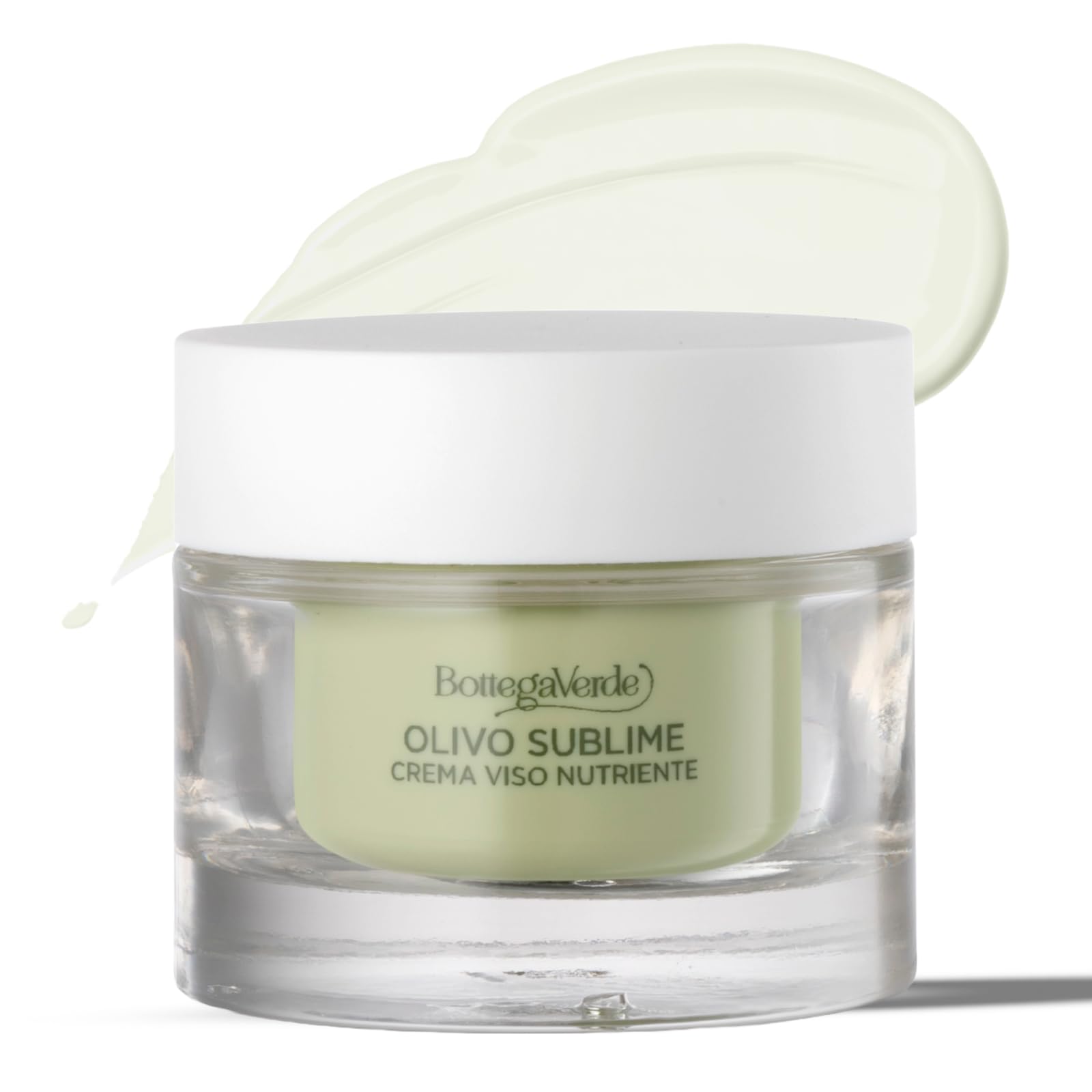 Nourishing and hydrating action. Bottega Verde's Olivo Sublime face moisturizer is formulated to intensely nourish and protect dry skin. Thanks to hyperfermented olive oil, it helps improve skin elasticity and immediately leaves skin feeling soft and comfortable. How to use it best Apply morning and evening to cleansed skin, massaging until completely absorbed. Perfect as a day cream, it's also ideal as a makeup base thanks to its rich, melting texture. Natural formula. Enriched with Bottega Verde's signature olive oil and natural active ingredients, this hydrating face cream is designed for dry skin. Bottega Verde: Nature and research From the heart of Tuscany, Bottega Verde selects and cultivates natural ingredients to create effective cosmetic treatments. For over 50 years, we have combined tradition and innovation to offer you quality products that are kind to the skin and the environment.BOTTEGA VERDE, QUALITY ITALIAN SKINCARE: For over 50 years, we have combined nature and innovation to offer you the best of Italian beauty. Discover all our products in the Brand Store: face, body, hair, makeup, and much more! Natural formula: face cream enriched with plant-based active ingredients. Nourishes and protects facial skin thanks to the olive oil in the Bottega Verde collection. For daily use: moisturizing face cream for dry skin, ideal as a day cream, perfect under makeup for everyday use. Rich and silky texture. Softer, more supple skin: this Bottega Verde moisturizing cream intensely nourishes the skin. Skin appears regenerated, and features look longer and more rested. Hydration and nourishment: moisturizing face cream with hyperfermented olive oil to intensely nourish dry and dehydrated skin. Our face cream for dry skin helps improve elasticity and provides comfort to the skin.Bottega Verde - Crème Hydratante Visage Olive Sublime - Nourrissant Peau Sec - Crème Visage Hydratante - Crème Visage Peau Séchée à L'huile d'Olive Hyperfermentée - Crème Jour 50mlDESCRIPTION DU PRODUIT Action nourrissante et hydratante. La crème hydratante visage Olivo Sublime de Bottega Verde est formulée pour nourrir intensément et protéger la peau sèche. Grâce à l'huile d'olive hyperfermentée, elle aide à améliorer l'élasticité cutanée et apporte immédiatement douceur et confort à la peau. Comment l'utiliser au mieux Appliquer matin et soir sur la peau nettoyée, en massant jusqu'à absorption complète. Parfaite comme crème visage de jour, idéale également comme base pour le maquillage grâce à sa texture riche et fondante Formule naturelle. Enrichie en huile d'olive de la tenue Bottega verte et actifs naturels, cette crème visage hydratante est conçue pour les peaux sèches. Boutonnière verte : nature et recherche Du cœur de la Toscane, Bottega Verde sélectionne et cultive des ingrédients naturels pour créer des traitements cosmétiques efficaces. Depuis plus de 50 ans, nous allions tradition et innovation pour vous offrir des produits de qualité, respectueux de la peau et de l'environnement.BOTTEGA VERDE, SKINCARE ITALIENNE DE QUALITÉ : depuis plus de 50 ans, nous combinons nature et innovation pour vous offrir le meilleur de la beauté italienne. Découvrez tous nos produits dans la marque Store : visage, corps, cheveux, maquillage et bien plus encore !. Formule naturelle : crème visage enrichie en actifs végétaux. Nourrit et protège la peau du visage grâce à l'huile d'olive de la tenue Bottega Verde. Pour usage quotidien : crème visage hydratante peau sèche idéale comme crème visage de jour, parfaite sous le maquillage pour un usage quotidien. Texture riche et soyeuse. Peau plus douce et élastique : cette crème hydratante Bottega Verde nourrit intensément la peau. La peau apparaît régénérée et les traits allongés et reposés. Hydratation et nutrition : crème hydratante visage avec huile d'olive hyperfermentée pour nourrir intensément la peau sèche et déshydratée. Notre crème visage peau sèche aide à améliorer l'élasticité et apporte du confort à la peau.
