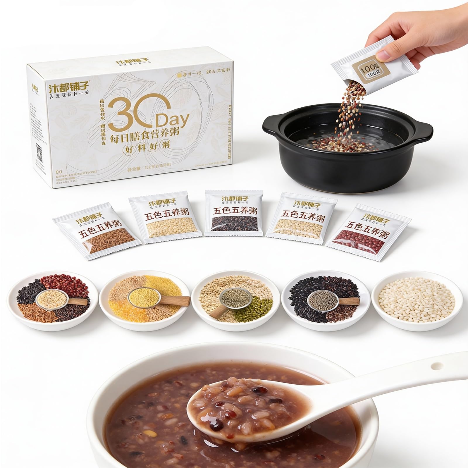 Bouillie De Céréales Mélangées 30 Jours, 100 G X 30 Paquets, 5 Saveurs, Sachets Individuels, Cuisson Facile For Le Petit-déjeuner collation