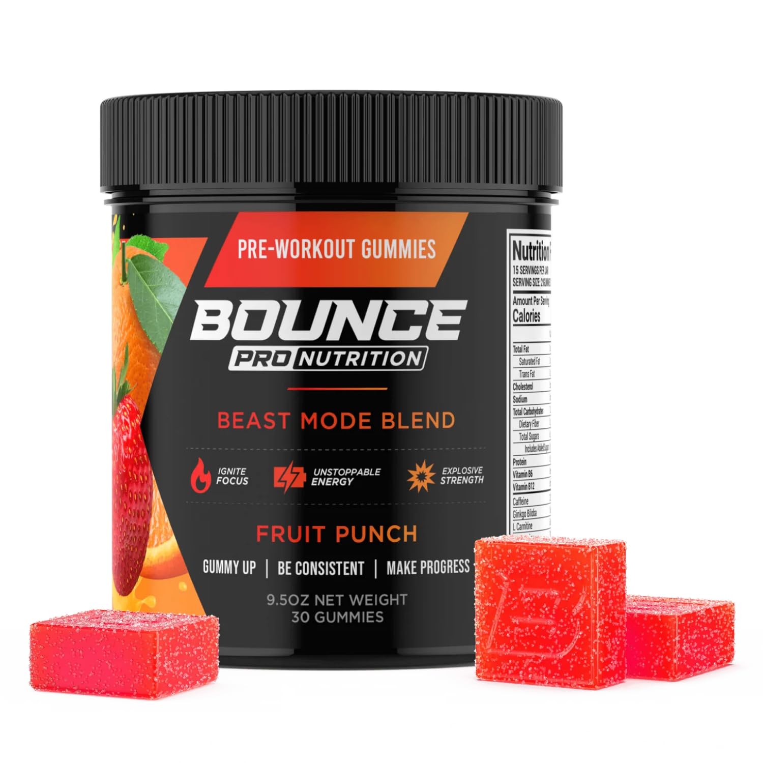 Bounce Pro Beast Mode Pre Workout Gummies with Caffeine Beta-Alanine & L-Tyrosine for Energy Focus & Training Intensity (30 Count (Pack of 1) Fruit Punch) Fruit Punch 30 Count (Pack of 1)