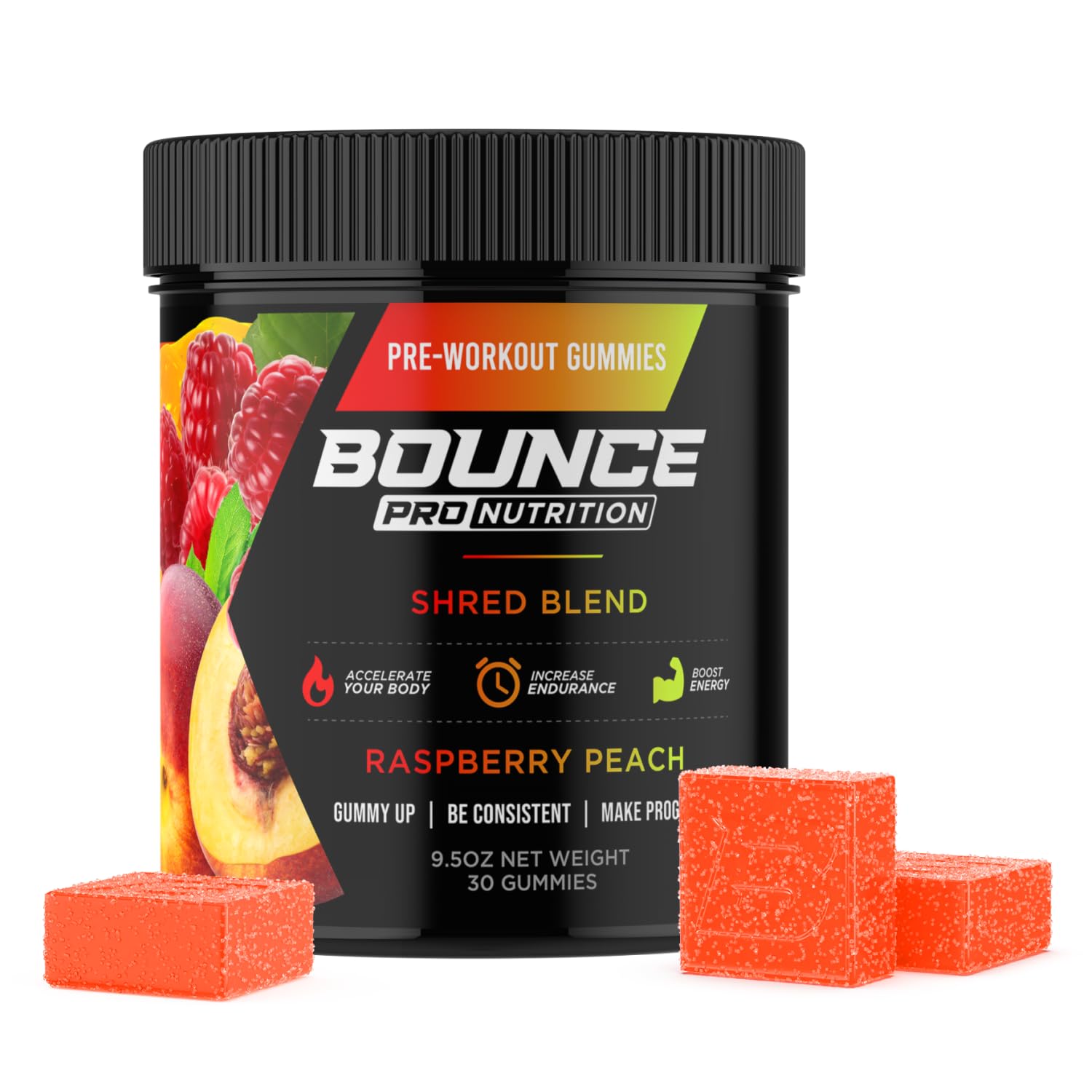 Bounce Pro Shred Blend Pre Workout Gummies Raspberry Peach 30 Vegan Gummies with Caffeine, Ashwagandha & L-Theanine for Energy, Focus & Endurance (30 Count (Pack of 1), Raspberry Peach) Raspberry Peach 30 Count (Pack of