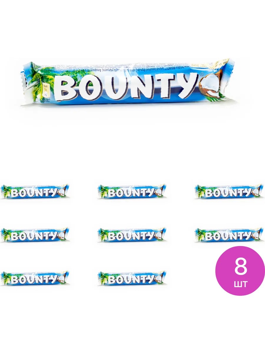 Bounty Шоколадный батончик Баунти молочный, кокос, весом 55г, 8 шт