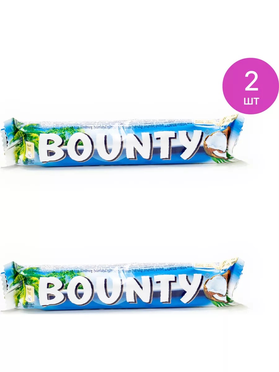 Шоколадный батончик Bounty / Баунти молочный, кокос, весом 55г / кондитерские изделия. Комплект состоит из 2 шт. Цена за комплект. Чувство голода появляется внезапно и оно вряд ли положительно скажется на общем настроении человека. Поможет быстро справиться с ним шоколадный батончик Bounty молочный с кокосовой начинкой. Популярное кондитерское изделие придется по вкусу взрослым и детям. Шоколадка Bounty молочный с кокосовой начинкой реализуется в индивидуальной упаковке. В ее составе содержатся следующие компоненты: Молочный шоколад (сахар, какао-масло, какао тертое, сухое цельное молоко, лактоза, сухая молочная сыворотка, молочный жир, эмульгатор (соевый лецитин), ароматизатор (ванилин)), сушеная мякоть кокоса, сахар, глюкозный сироп (кукурузный, пшеничный), эмульгатор (моно- и диглицериды жирных кислот), агент влагоудерживающий (глицерин), ароматизатор (ванилин), соль. Содержит глютен. Может содержать незначительное количество яичного белка, арахиса, фундука. Вес - 55 г. Батончик Bounty молочный с кокосовой начинкой можно съесть в любой удобный момент, например, когда появилась свободная минутка в течение рабочего дня, во время обеда за стаканом горячего чая. Он наполнит энергией и поможет сосредоточиться во время урока в школе или занятий в институте. Сладкому лакомству всегда найдется минутка. Хранить продукт необходимо при температуре от +5гр. С до +22гр. С в месте, где нет воздействия прямых солнечных лучей. Хотите подкрепиться и быстро справиться с чувством голода? Батончик шоколадный Bounty молочный с кокосовой начинкой подойдет для этой цели лучше всего. Шоколадные батончики продукты / кондитерские изделия / шоколадки батончики.
