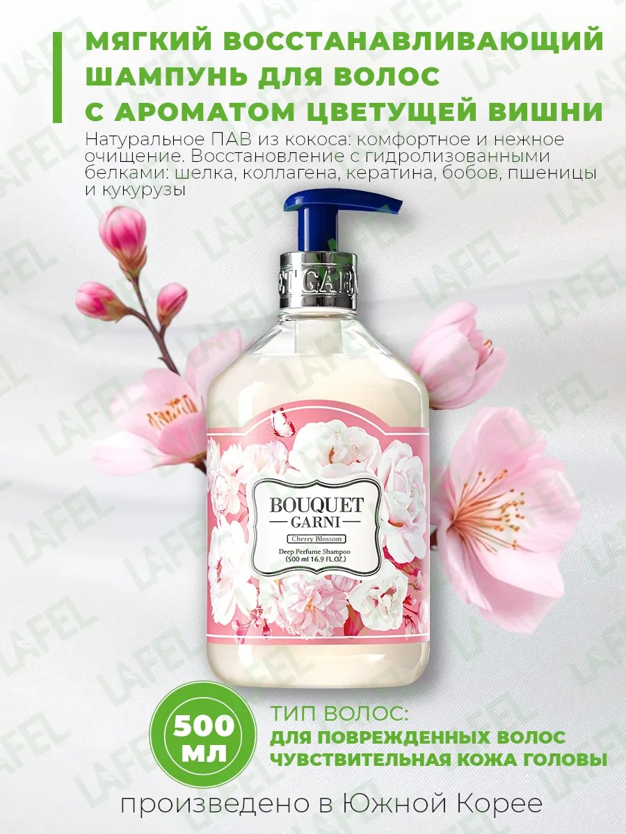 Cherry Blossom Perfumed Shampoo gently cleanses and nourishes hair, protecting it from damage, helping to strengthen and maintain its elasticity. This shampoo contains 11 types of amino acids that increase elasticity and firmness, strengthen, make hair strong and shiny, and envelop it in an invisible protective barrier.
