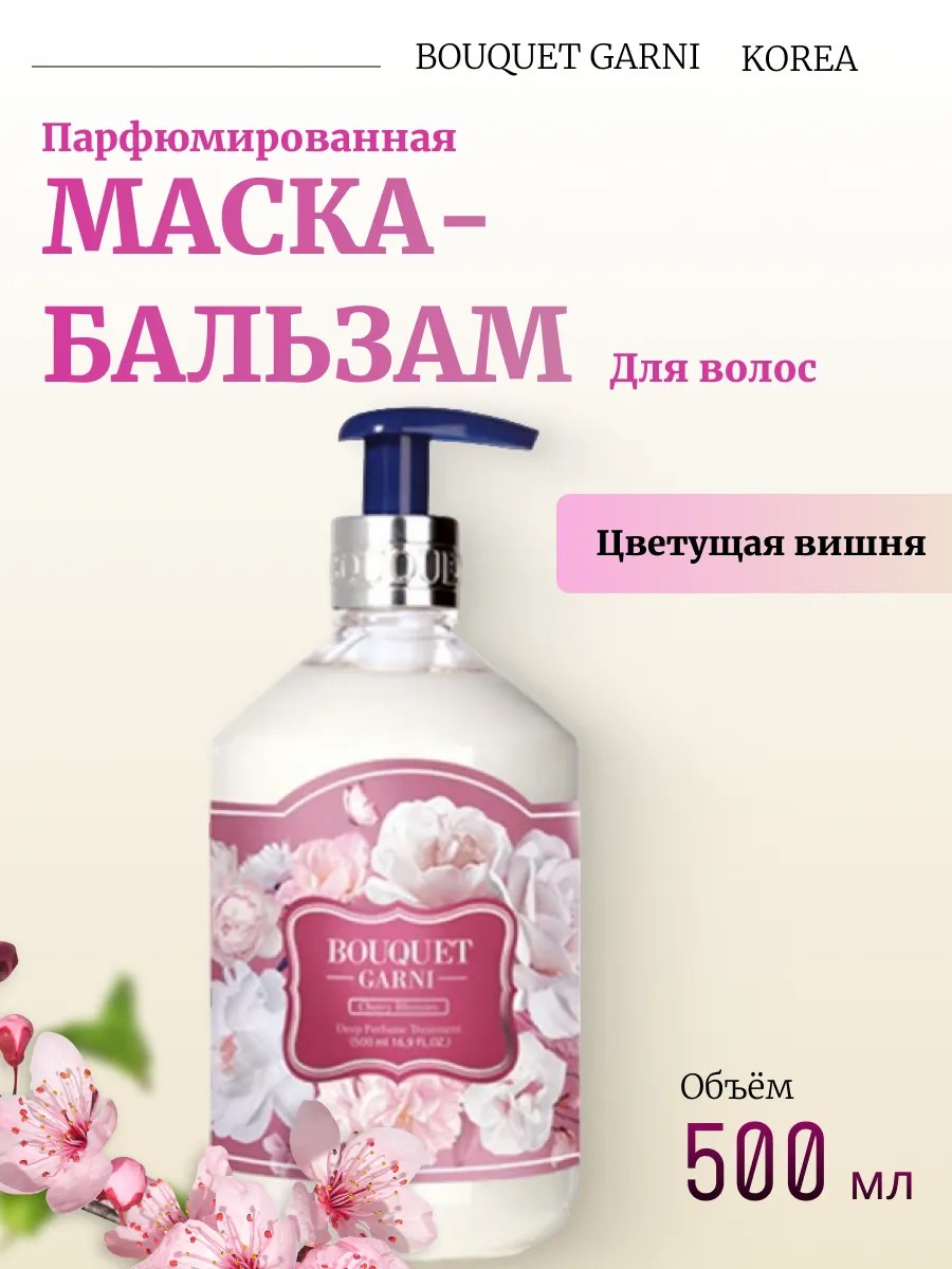 Парфюмированный маска-бальзам BOUQUET GARNI Deep Perfume Treatment с ароматом цветущей вишни действительно звучит как замечательный продукт для ухода за волосами! Вот основные преимущества и особенности этого бальзама: