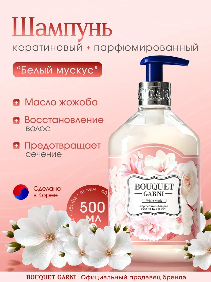 | Полное наименование товара | BOUQUET GARNI DEEP PERFUME SHAMPOO WHITE MUSK Парфюмированный шампунь для волос «Белый мускус» 500мл |