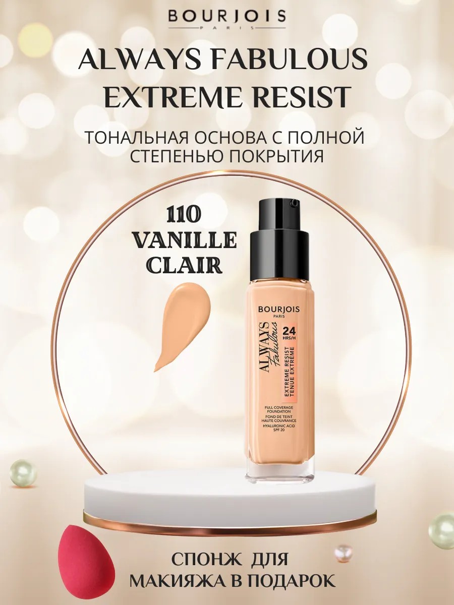 | Полное наименование товара | Bourjois Always Fabulous Extreme Resist Тональный крем | Тон 110 Vanille clair |