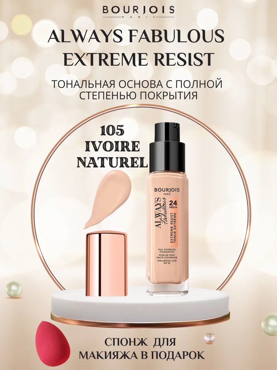 | Полное наименование товара | Bourjois Always Fabulous Extreme Resist Тональный крем | Тон 105 IVOIRE NATUREL |