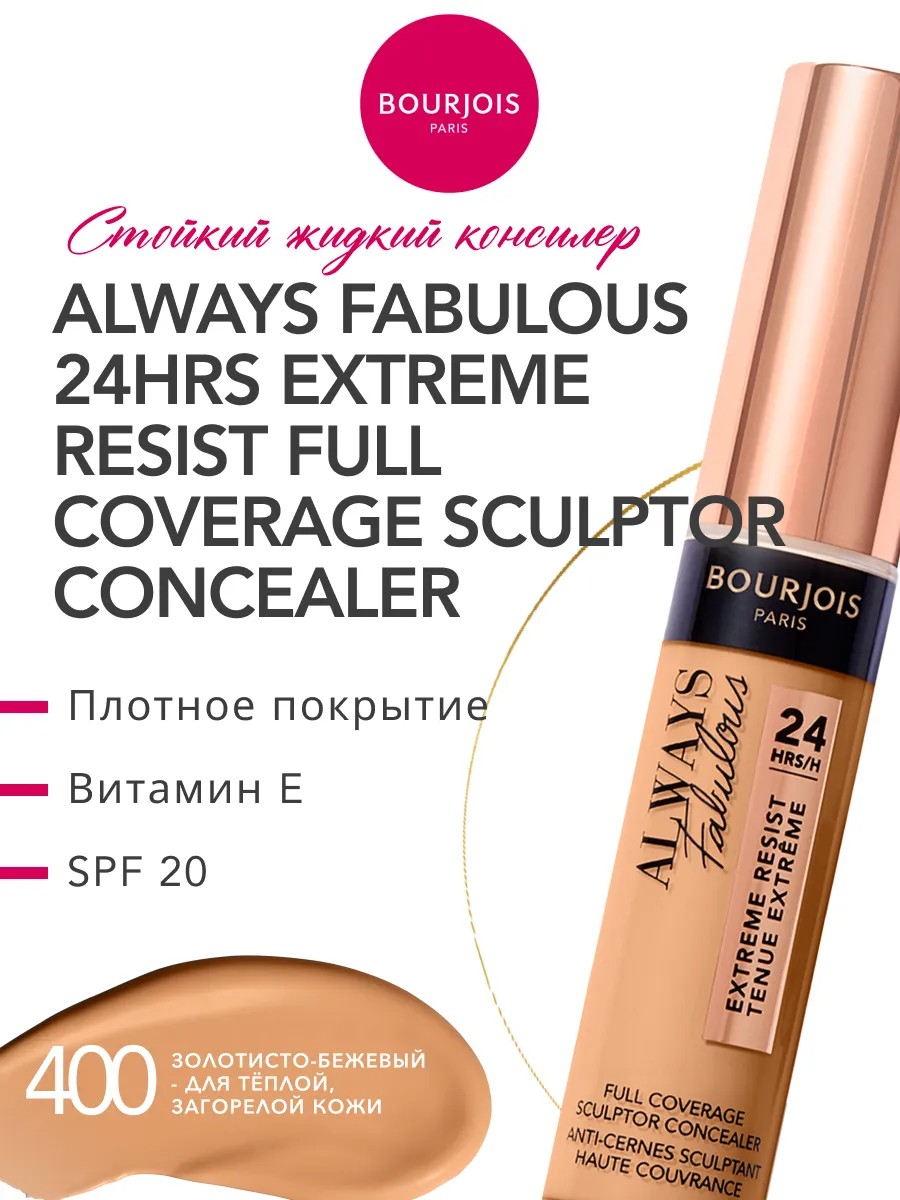 Забудьте о несовершенствах! Консилер для лица Bourjois Always Fabulous 24Hrs Extreme Resist – ваш плотный консилер и кремовый скульптор для лица в одном флаконе. Этот инновационный корректор для лица от легендарного французского бренда буржуа косметика создает безупречное покрытие, которое держится до 24 часов.