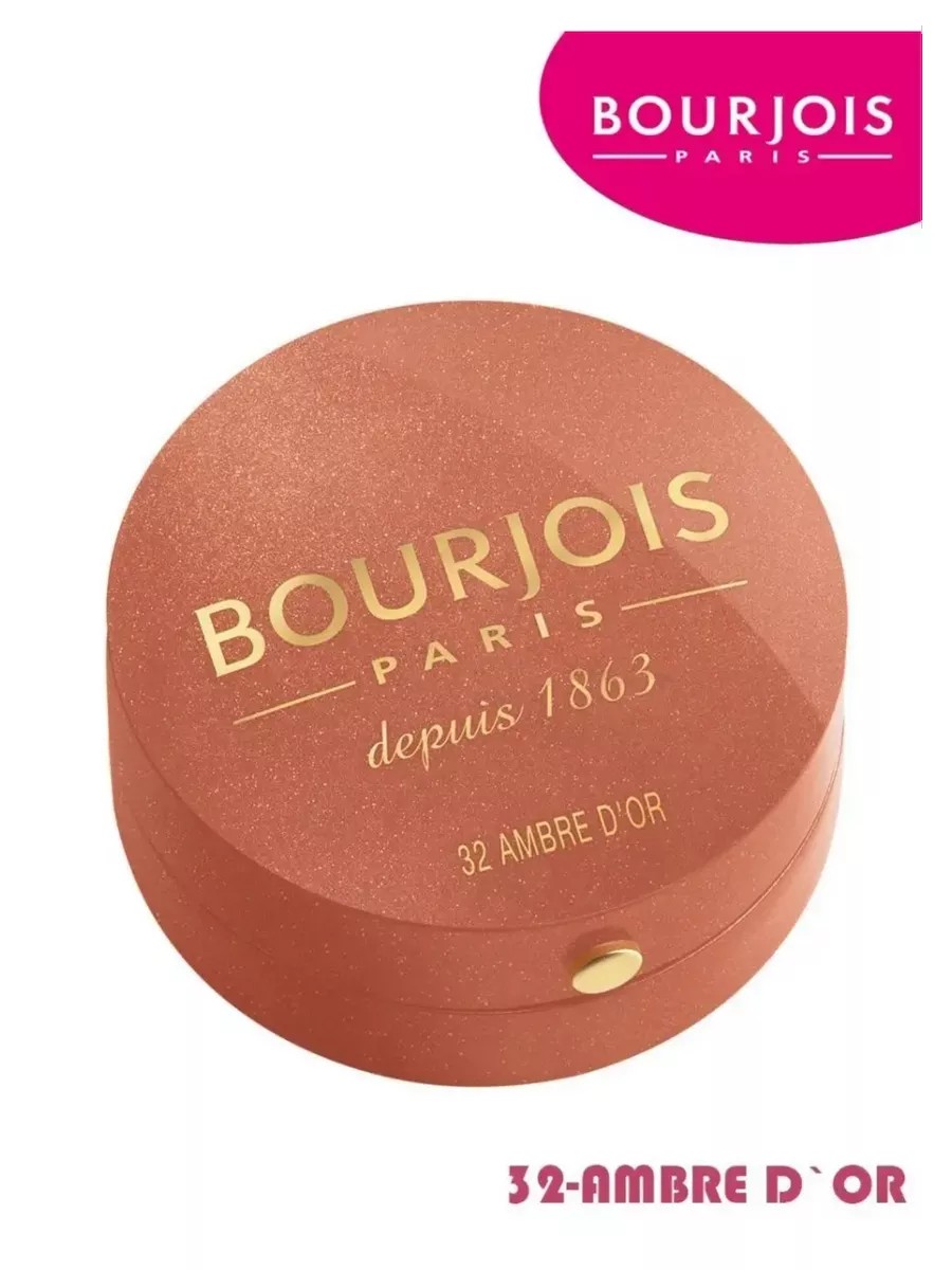 Bourjois Blush. Baked Blusher blush in small, round, rose-scented jars has been a symbol of the Bourjois brand since 1863. The delicate texture of the blush transforms into a light, velvety powder upon contact with the skin. The blush is incredibly easy to apply and lays down perfectly. Skin acquires a healthy glow! The enveloping rose scent that emerges upon opening the Bourjois blush creates a light and playful mood. How to use: Apply blush to the face and blend with a brush.