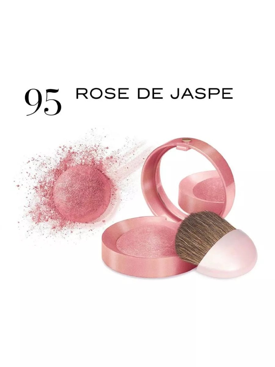 Bourjois Blush. Baked Blusher blush in small, round, rose-scented jars has been a symbol of the Bourjois brand since 1863. The delicate texture of the blush transforms into a light, velvety powder upon contact with the skin. The blush is incredibly easy to apply and lays down perfectly. Skin acquires a healthy glow! The enveloping rose scent that emerges upon opening the Bourjois blush creates a light and playful mood. How to use: Apply blush to the face and blend with a brush.