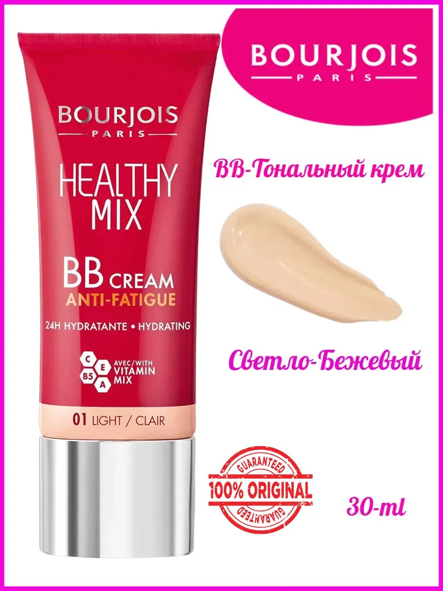 Прекрасный и наш BB-крем от Bourjois! BB-крем Healthy Mix — ваш союзник в борьбе за естественность! Идеальное сочетание витаминов A, C, E и B5 — лучший помощник в борьбе с признаками усталости на лице. Крем подчеркивает сияние вашей кожи и придает ей здоровый и естественный цвет. Он выравнивает тон кожи и скрывает недостатки цвета, делая кожу шелковистой и гладкой. Предупреждаем, что BB-крем Healthy Mix имеет такую легкую и нежную формулу, что вы даже можете забыть, если нанесли его утром! Идеально ложится, позволяет дышать и обеспечивает до 24 часов увлажнения. И, конечно, имеет восхитительный фруктовый аромат. Лови момент с BB-кремом Healthy Mix от Bourjois.