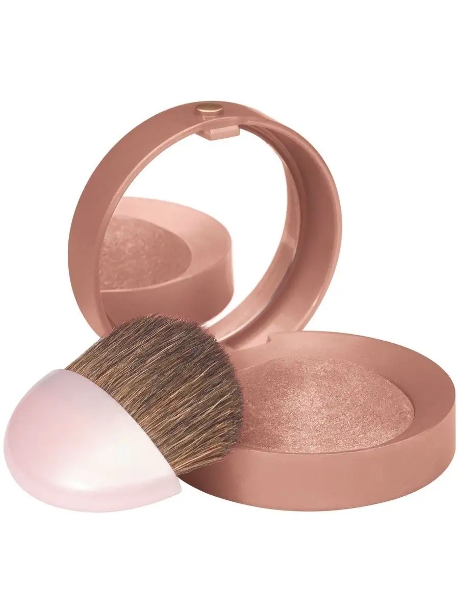 Blusher, Shade 85 Sienne, 2.5 g. Baked Blusher blush in small round jars with a rose scent has been the symbol of the Bourjois brand since 1863. The delicate texture of the blush transforms into a light, velvety powder upon contact with the skin. The blush is incredibly easy to apply and lays down perfectly. Skin acquires a healthy glow! The delicate brush made of natural kolinsky hair works wonders! The enveloping rose scent that appears upon opening the Bourjois blush creates a light and playful mood, and the built-in mirror makes application easy.