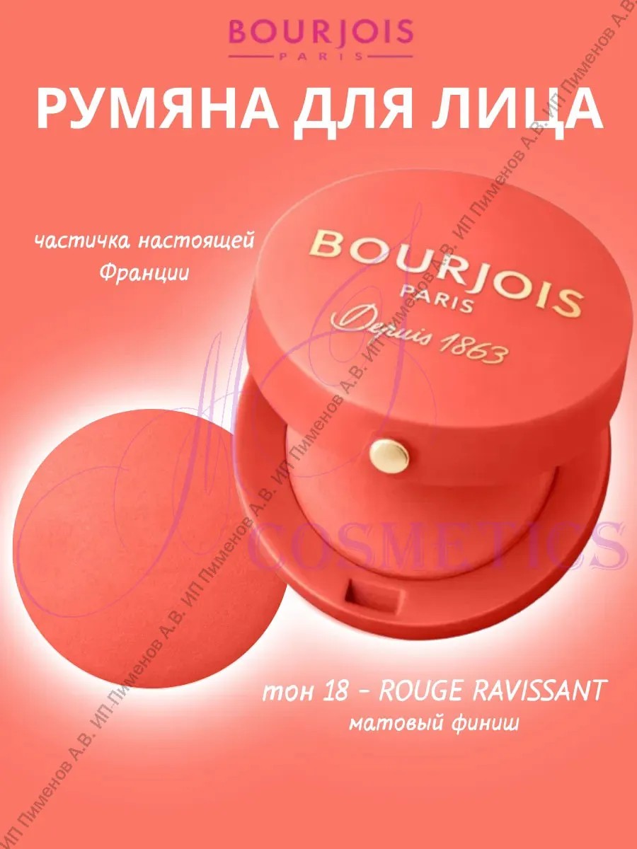 Запеченные румяна Blusher в маленьких круглых баночках с ароматом розы - символ марки Bourjois с 1863 года. Нежная текстура румян при соприкосновении с кожей превращается в легкую, бархатистую пудру. Румяна невероятно легко наносятся и идеально ложатся. Кожа приобретает здоровый румянец. Нежнейшая кисточка из натурального колонка творит чудеса. Обволакивающий аромат розы, появляющийся при открытии компактных румян Буржуа, создает легкое и игривое настроение.