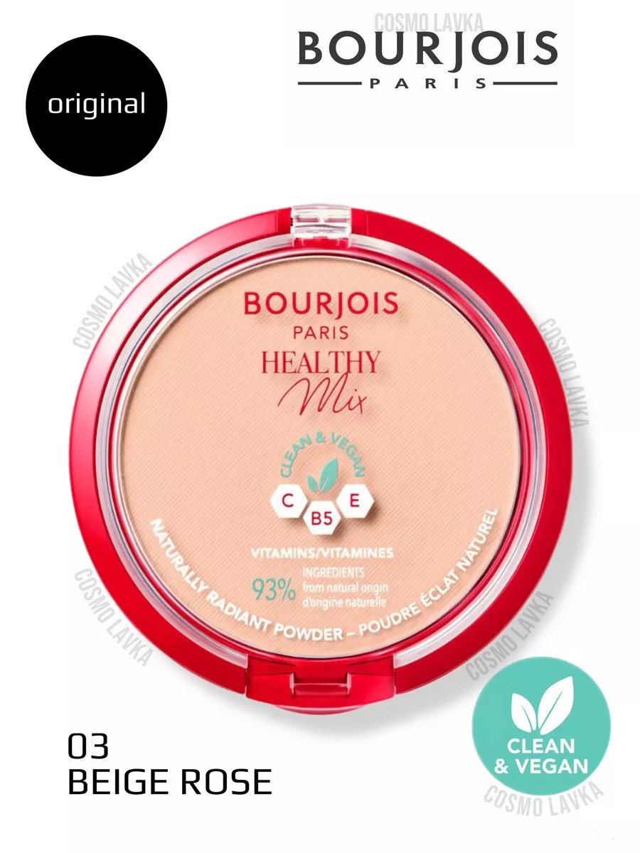 Скажи привет красивой и сияющей коже!Компактная пудра Healthy Mix от Bourjois обеспечивает идеальное покрытие для здорового и естественного макияжа. Пудра скрывает признаки усталости, придает сияние вашей коже и одновременно делает ее гладкой. Инновационный комплекс витаминов С, Е и В5 борется с признаками усталости и устраняет тусклость кожи. Мягкая формула Healthy Mix не сушит кожу, легко наносится и дарит комфорт, а еще обладает легким фруктовым, цветочным ароматом! Компактная пудра Bourjois Healthy Mix в элегантной круглой упаковке с прозрачным колпачком, позволяет увидеть оттенок. Кроме того, упаковка оснащена функциональным зеркалом и большим спонжем, который облегчает нанесение в любом месте и в любое время. Придай своей коже витаминный заряд для бодрости и красоты с помощью пудры Healthy Mix от Bourjois!