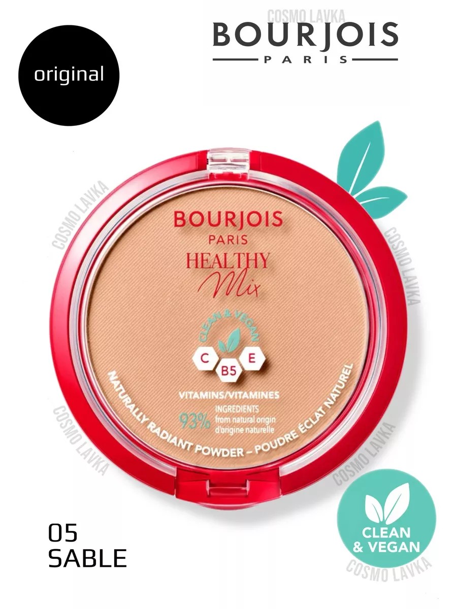 Скажи привет красивой и сияющей коже!Компактная пудра Healthy Mix от Bourjois обеспечивает идеальное покрытие для здорового и естественного макияжа. Пудра скрывает признаки усталости, придает сияние вашей коже и одновременно делает ее гладкой. Инновационный комплекс витаминов С, Е и В5 борется с признаками усталости и устраняет тусклость кожи. Мягкая формула Healthy Mix не сушит кожу, легко наносится и дарит комфорт, а еще обладает легким фруктовым, цветочным ароматом! Компактная пудра Bourjois Healthy Mix в элегантной круглой упаковке с прозрачным колпачком, позволяет увидеть оттенок. Кроме того, упаковка оснащена функциональным зеркалом и большим спонжем, который облегчает нанесение в любом месте и в любое время. Придай своей коже витаминный заряд для бодрости и красоты с помощью пудры Healthy Mix от Bourjois!