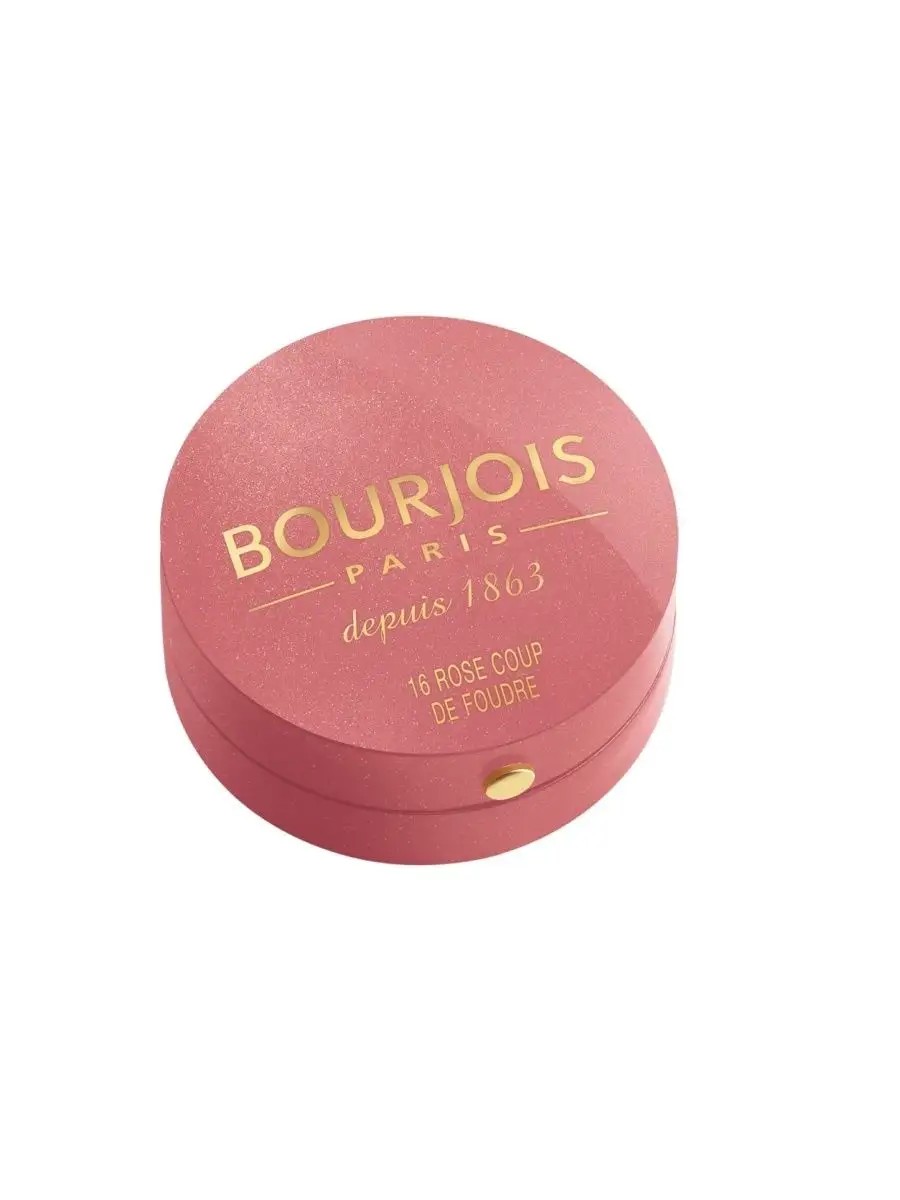 Bourjois, Blush, Shade 16 Rose Coup de Foudre, 2.5 g. Legendary blush in small round jars! This product is the symbol of the Bourjois brand, produced since 1863. The silky texture of the blush transforms into a light, velvety powder upon contact with the skin. The blush is incredibly easy to apply and lays down perfectly. Skin looks stunning! The delicate brush made of natural kolinsky hair works wonders! The stunning rose-scented fragrance, characteristic of Bourjois blush, creates a mood of lightness, and the built-in mirror makes application easy. So much temptation in one small round jar!