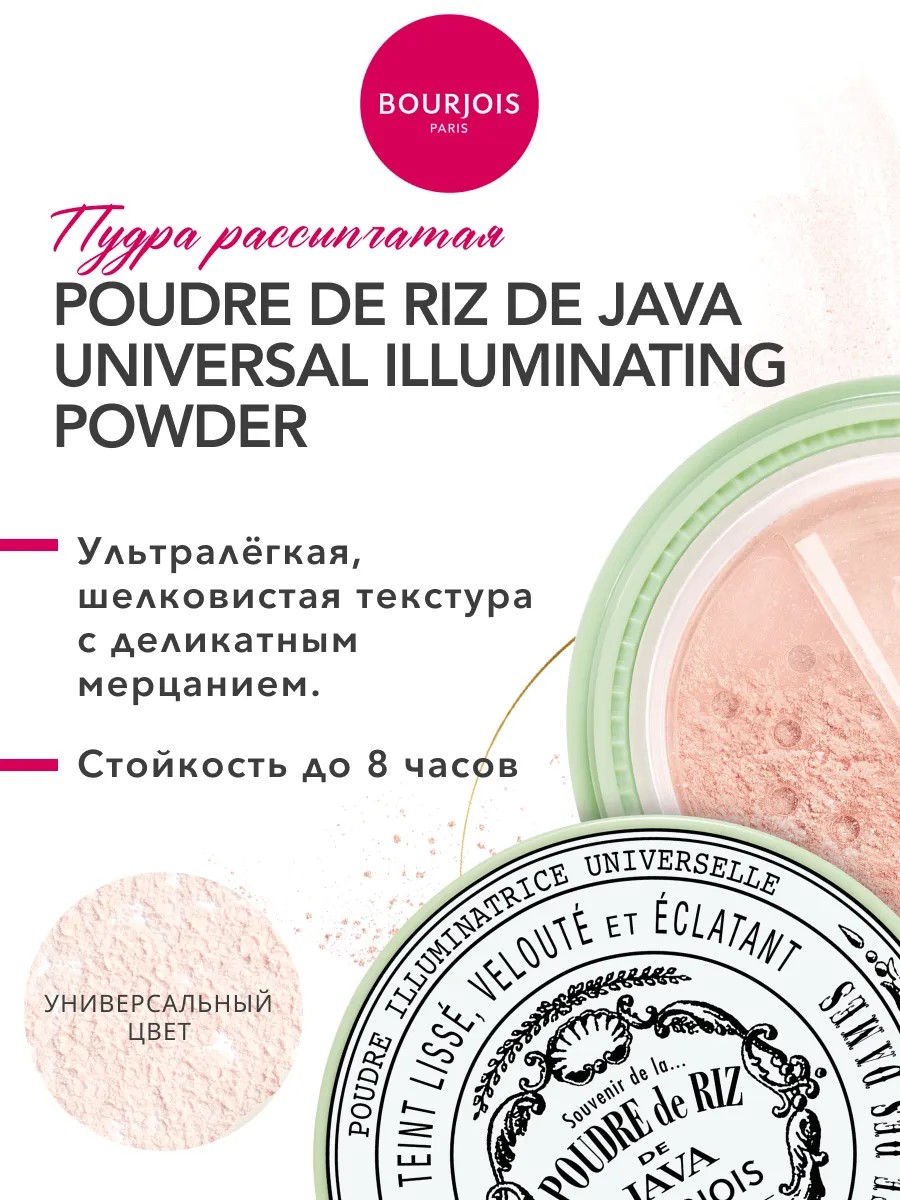 Выбирая bourjois, вы выбираете не просто пудру рассыпчатую, а частичку французской истории макияжа с 1863 года. Доверьтесь легендарному качеству буржуа косметика и откройте секрет сияющей, идеально гладкой кожи с универсальной пудрой Poudre de Riz de Java. Подарите своей коже роскошь естественного свечения!