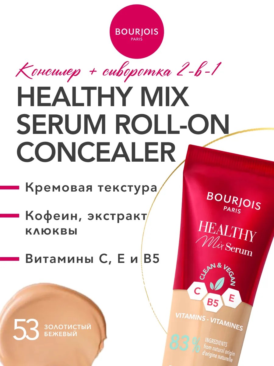 Устали бороться с темными кругами под глазами и тусклым цветом лица? Французская буржуа косметика представляет ваш идеальный консилер для лица — инновационный корректор-ролик Healthy Mix Serum! Этот легендарный корректор для лица — секрет свежести и сияния кожи.