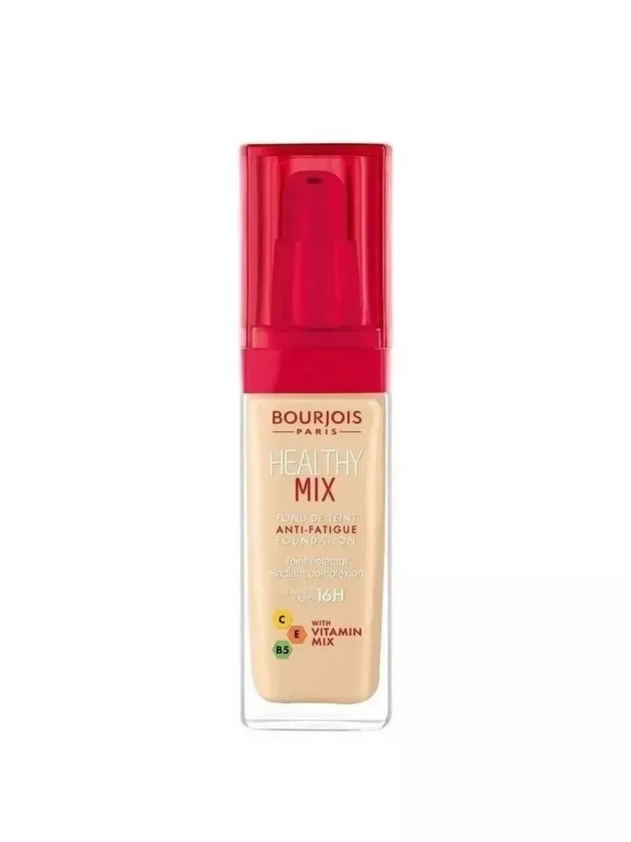 Bourjois Healthy Mix Anti-Fatigue Foundation (shade #51) combines high quality, unrivaled longevity, and a fruity scent. This product not only corrects skin tone but also eliminates imperfections. This cosmetic product will even out your complexion, making it darker or lighter. Shade #51 "Light Vanilla" is suitable for those with a fair complexion. The texture of the cream is soft and lightweight.