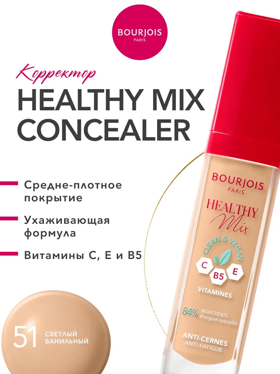Bourjois создал уникальное средство, которое не просто маскирует несовершенства и синяки под глазами, а работает на благо вашей кожи. На 84% натуральный консилер для лица с формулой сыворотки обеспечивает невероятное увлажнение до 24 часов! Результат — кожа выглядит отдохнувшей, гладкой и сияющей изнутри, без эффекта маски.