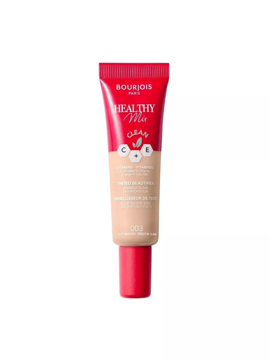 Healthy Mix by Bourjois Paris is inspired by Parisian style. This light-to-medium coverage toning face cream delivers 24-hour hydration, instantly leaving skin softer and smoother. A blend of naturally derived vitamins C and E blurs imperfections and evens skin tone while maintaining a natural appearance. It instantly conceals signs of fatigue and adds radiance thanks to pigments and minerals that visibly brighten skin in just 2 weeks. Furthermore, the formula is completely free of mineral oils.