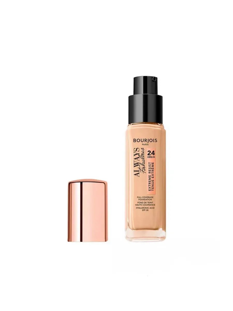 Bourjois Always Fabulous 24-Hour Foundation is a long-wearing, high-coverage foundation with a semi-matte finish that keeps skin fresh and hydrated all day long. Enriched with hyaluronic acid, vitamin E, and collagen, it deeply hydrates, protects, and improves skin elasticity. It applies and blends easily, creating an even, natural complexion without a mask-like effect.