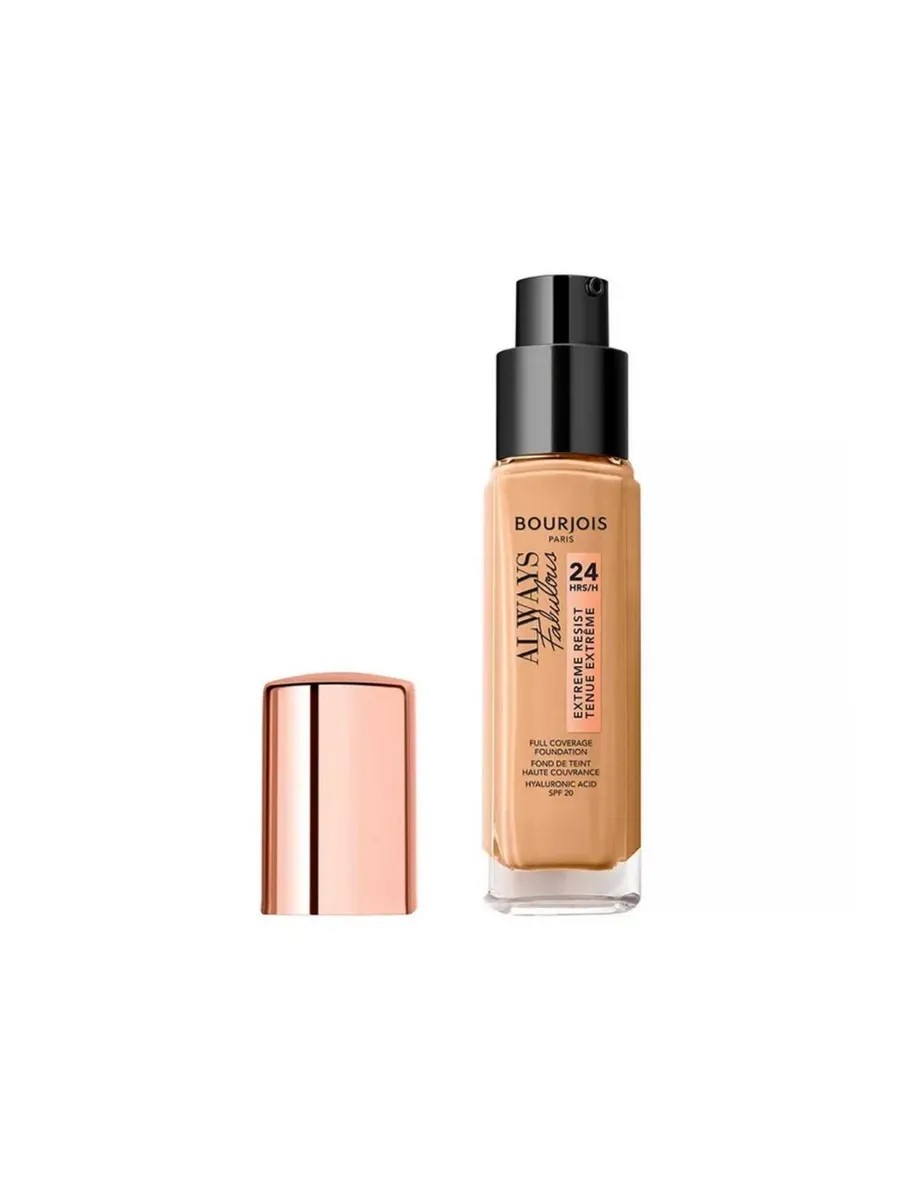 Bourjois Always Fabulous 24-Hour Foundation is a long-wearing, high-coverage foundation with a semi-matte finish that keeps skin fresh and hydrated all day long. Enriched with hyaluronic acid, vitamin E, and collagen, it deeply hydrates, protects, and improves skin elasticity. It applies and blends easily, creating an even, natural complexion without a mask-like effect.