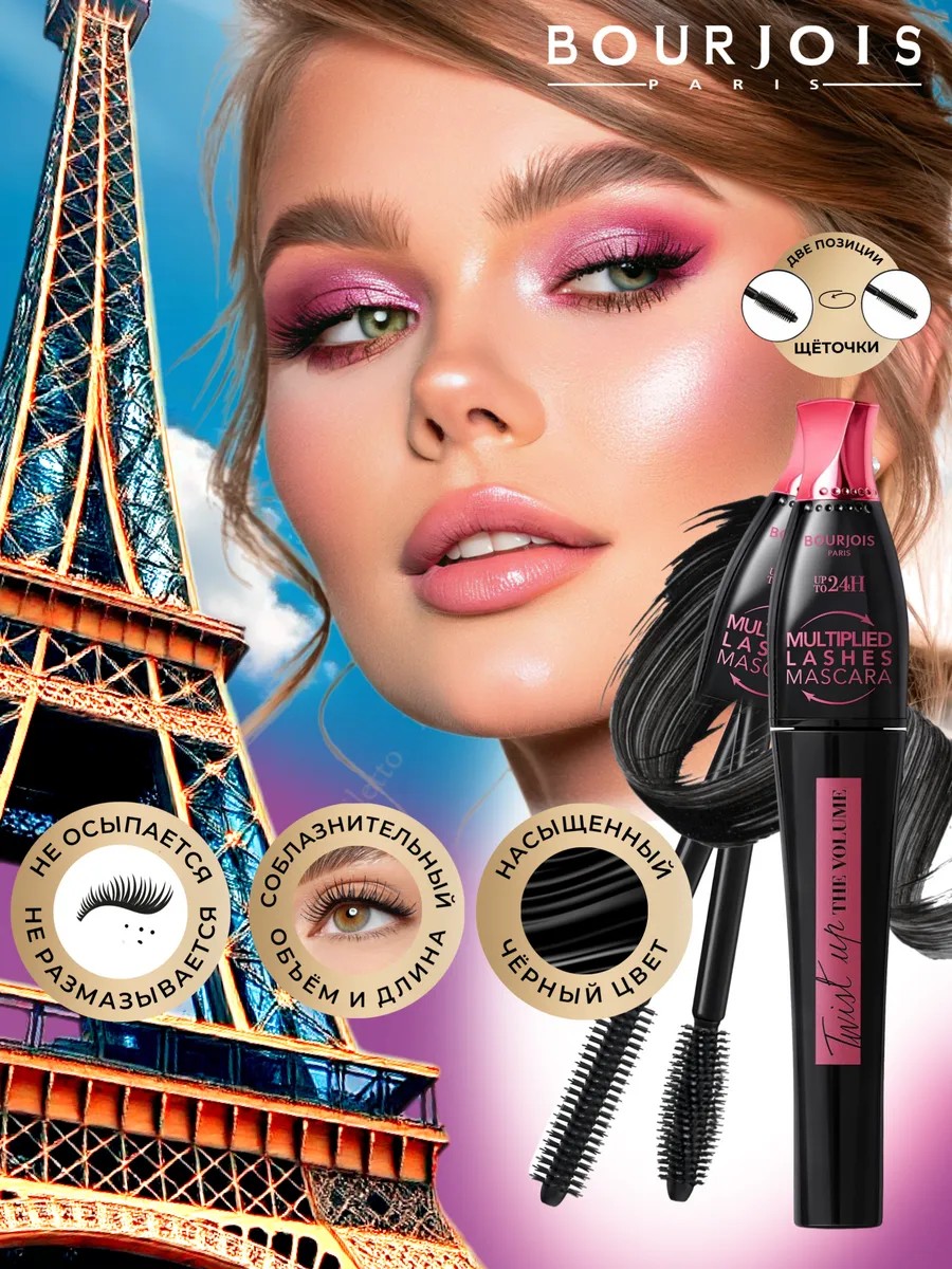 Удлиняющая и подкручивающая тушь для ресниц от Bourjois Paris Twist Up The Volume Multiplied Lashes Mascara 24 подчеркивает длину ваших ресниц, а также придает им необыкновенный объем благодаря своей двухпозиционной кисточке. Ее трансформируемая пластиковая щеточка мгновенно делает ваш взгляд завораживающим: