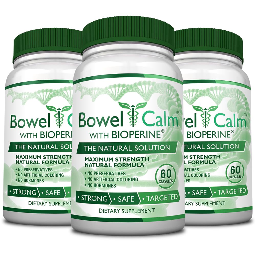 Bowel Calm - Soothe Intestinal Irritation - Ginger Turmeric Boswellia BioPerine - 3 Month Supply 60 Count (Pack of 3)