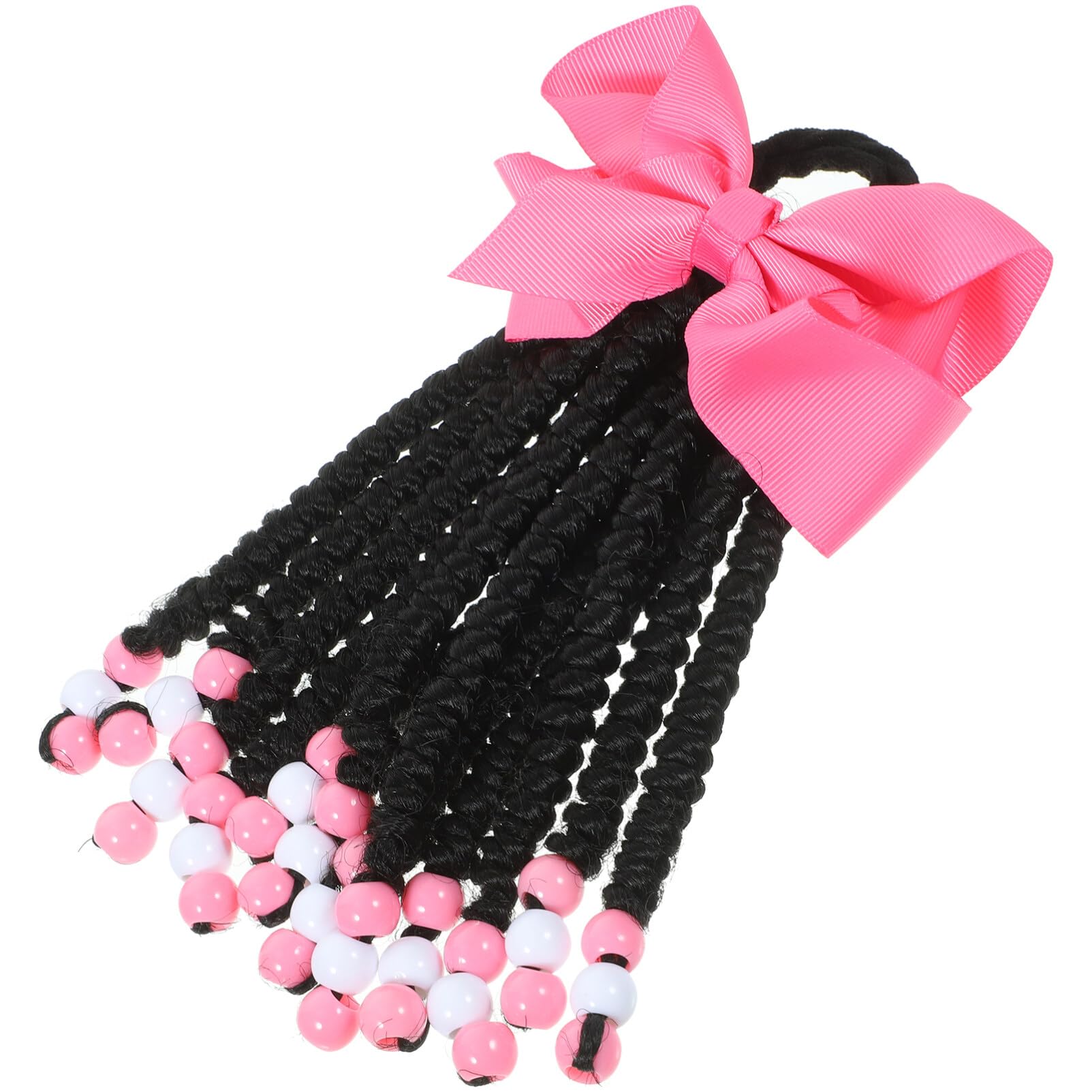 Bowknot Braided Ponytail Colored Braids Hair Extensions with Rubber Bands and Beads Ponytails Hair Bows Synthetic Hairpieces for Women Girls Party Highlights Cosplay Dress Up
