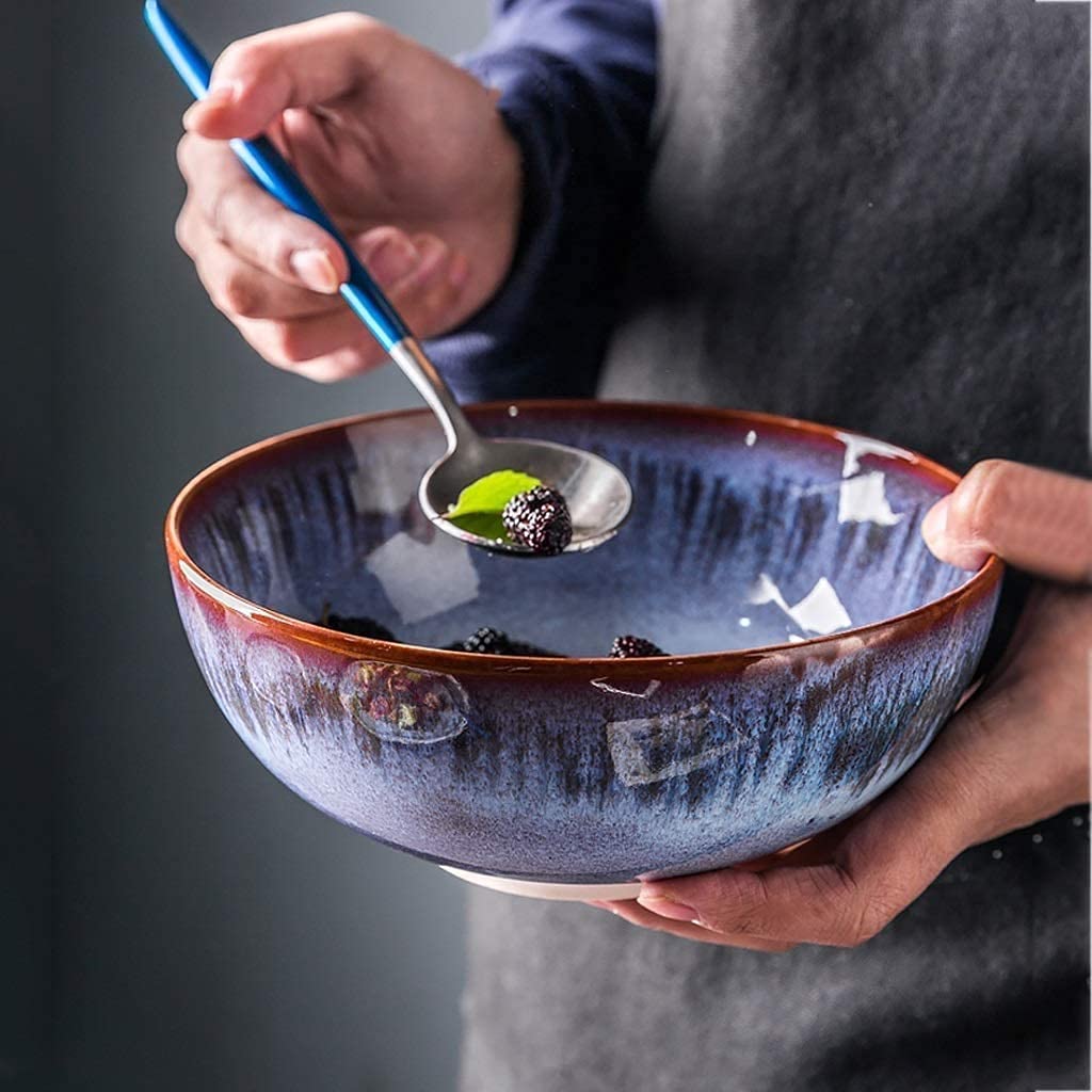 RAZZUM Brand: Sturdy Porcelain: drop and shock resistant. Oven, freezer, dishwasher, and microwave are safe. They are easy to clean. If you have any questions,please contact us in time,we will solve the problem as soon as possible.Your affirmation is our greatest motivation! Name:Ceramic Bowl Color:As shown Pieces:1 Material:ceramic Size:diameter 18.7cm,height 7.5cm Weight:0.8kg Suitable for:microwave,dishwasher,disinfection cabinetoven Features:Unique design,environmental protection,practical and beautiful Ceramic are handmade and each one is unique. Combining practicality with style, this bowl is perfect for any table setting.Is the choice for sharing food with friends and family,The first choice for families to buy cutlery. Suitable for microwave oven disinfection cabinet dishwasher. Large capacity,multi-purpose,Easy to clean,not easy to produce scratches. Using high-quality ceramics,exquisite workmanship,health and environmental protection. Stright Side and Wide Design: these wide are perfect for entertaining. Pasta, salad, appetizer, liquid, and sauces stay in the bowl, they have a wide design that allows for larger, creative portions.