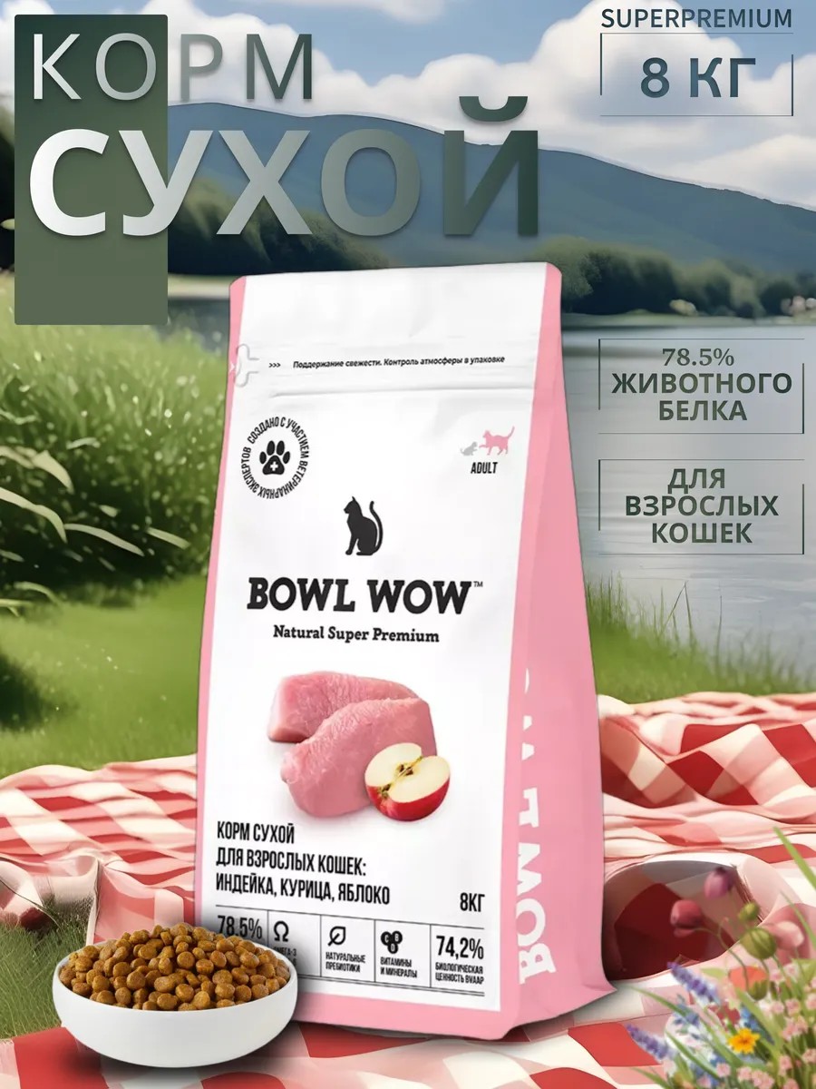 Bowl Wow Сухой корм для взрослых кошек, с индейкой, курицей и яблоком