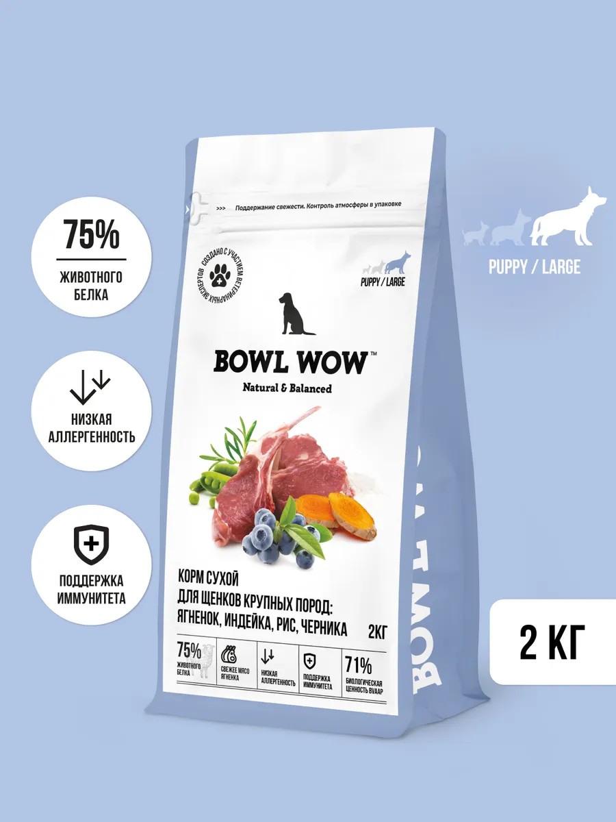 BOWL WOW Корм для щенков сухой для крупных пород, 2кг