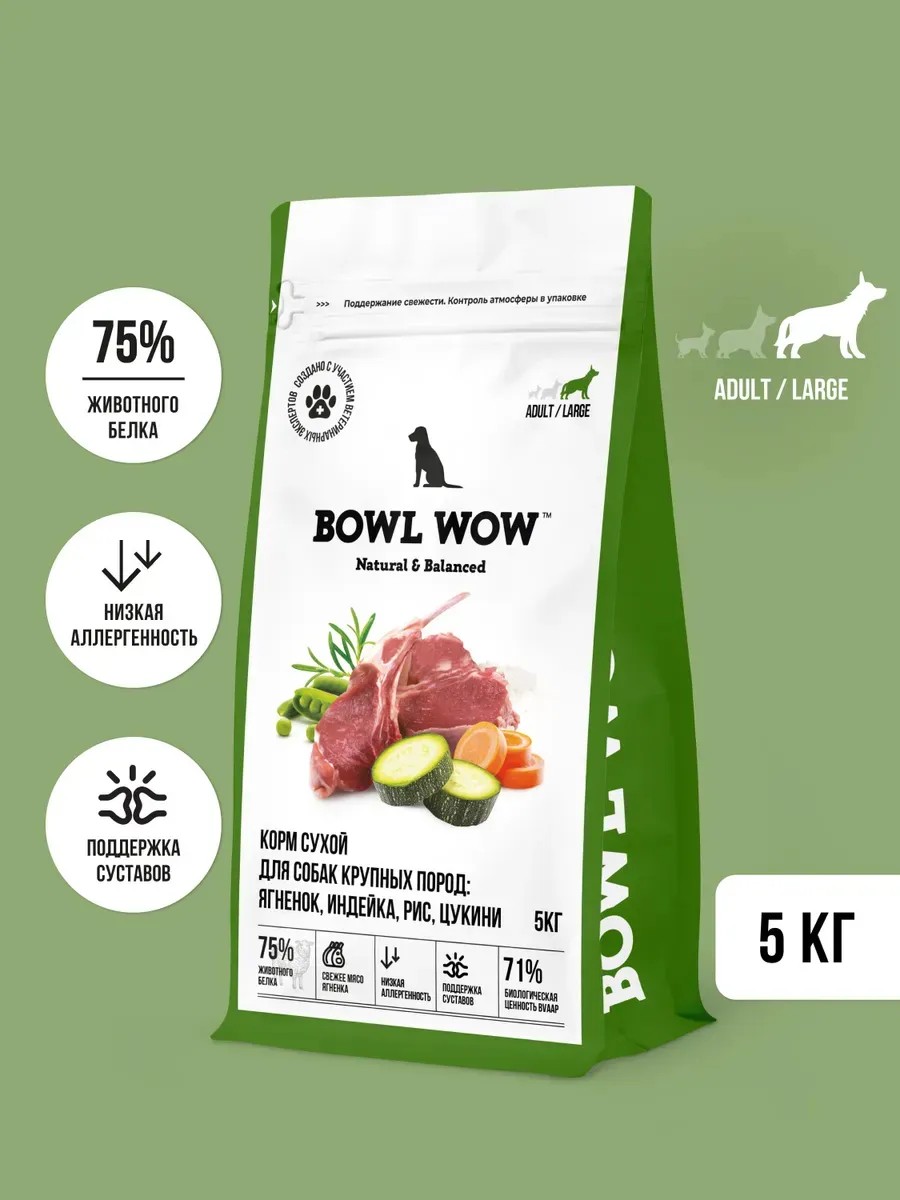 BOWL WOW Сухой корм для крупных собак ягненок, индейка, рис - 5 кг