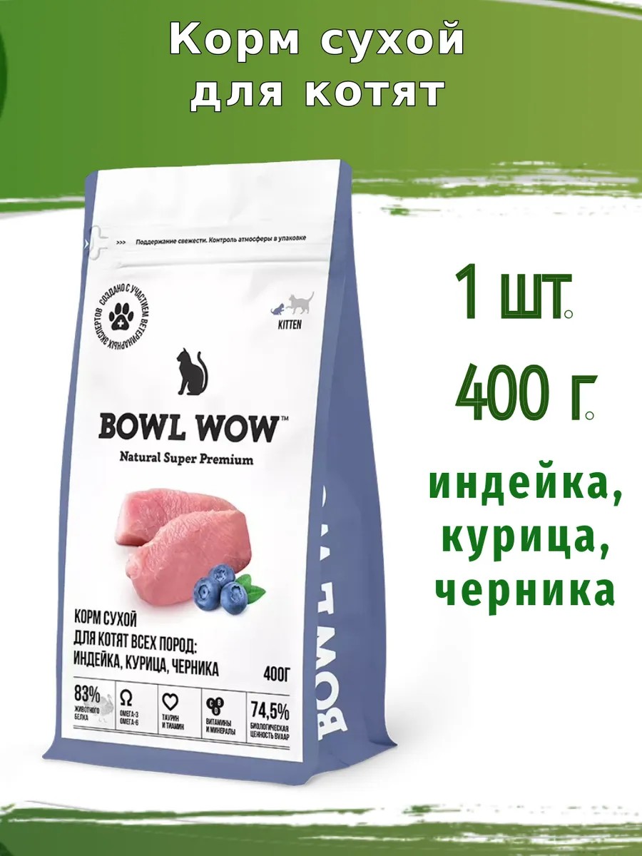 BOWL WOW Корм для котят с курицей и черникой 400г
