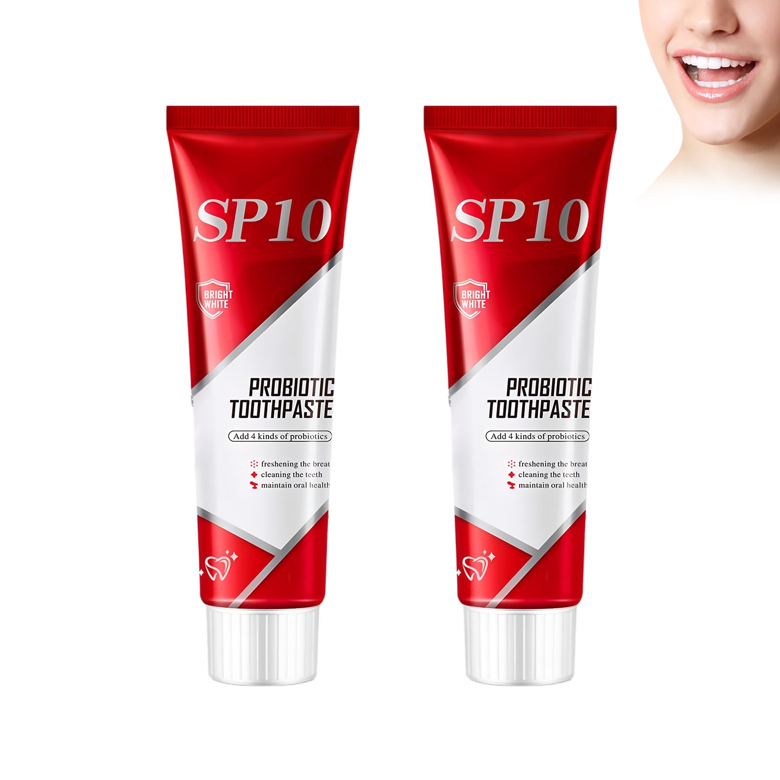 Portable tubes: Each tube is compact enough to fit in toiletry bags, making it easy to carry on the go, whether traveling or at work. Fresh taste: Provides a subtle, long-lasting fresh taste that leaves breath clean and makes morning and night brushing more enjoyable. Gentle formula: Made with mild, tooth-friendly ingredients, suitable for regular use by adults and children (under adult supervision), with no harsh feeling. With probiotics: Enriched with probiotic benefits, it supports a balanced oral environment to enhance your daily oral hygiene routine. Pack of 2: Contains two tubes of SP-10 probiotic toothpaste, a convenient amount for daily family use or as a travel replacement.
