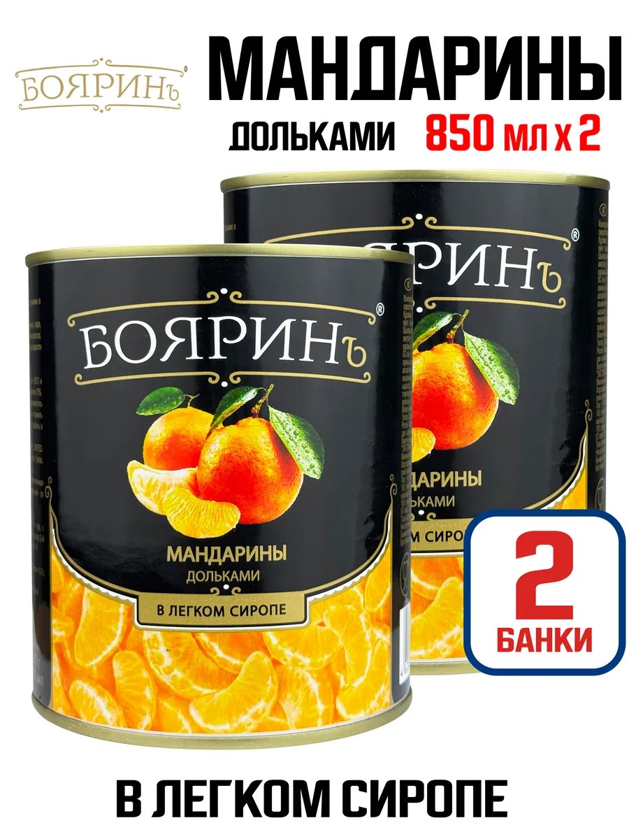 Бояринъ Мандарины дольками в легком сиропе, 850 мл - 2 шт