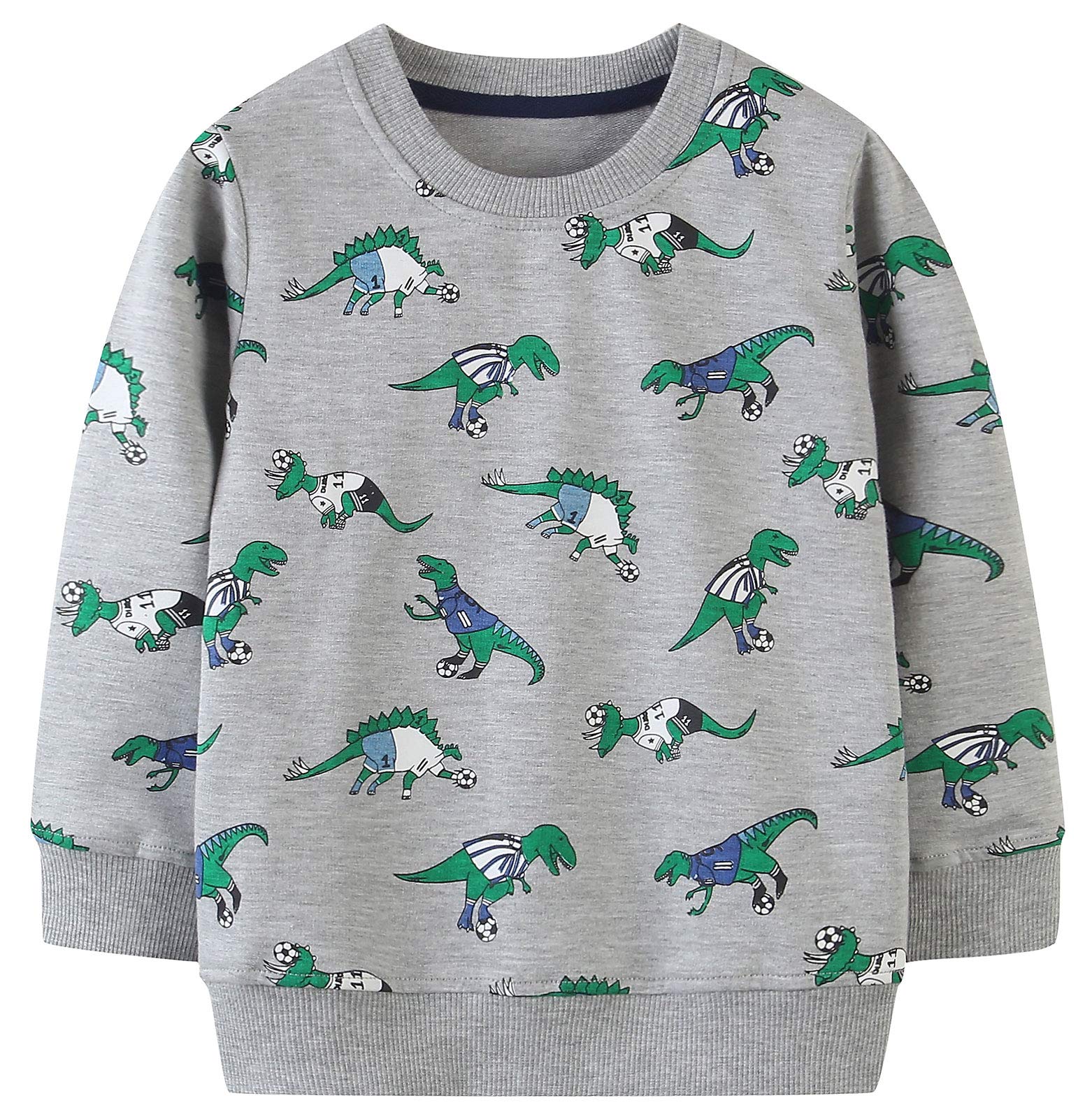 Boys Sweatshirt for Kids Dinosaur Jumper Cotton Casual Top Long Sleeve Pullover T-Shirt Toddler Girls Shirts Baby Clothes 1-8 Years 6-7 Years Grey