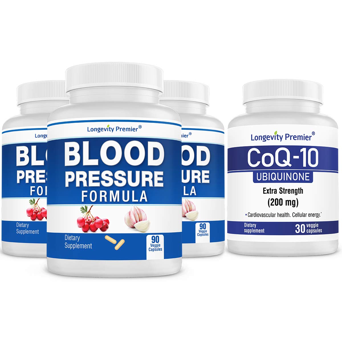 BP Value Pack Longevity Blood Pressure Formula 90 caps x 3 Bottles with 1 Free Bottle of CoQ10 30 caps BP 90x3+CoQ10 (60)