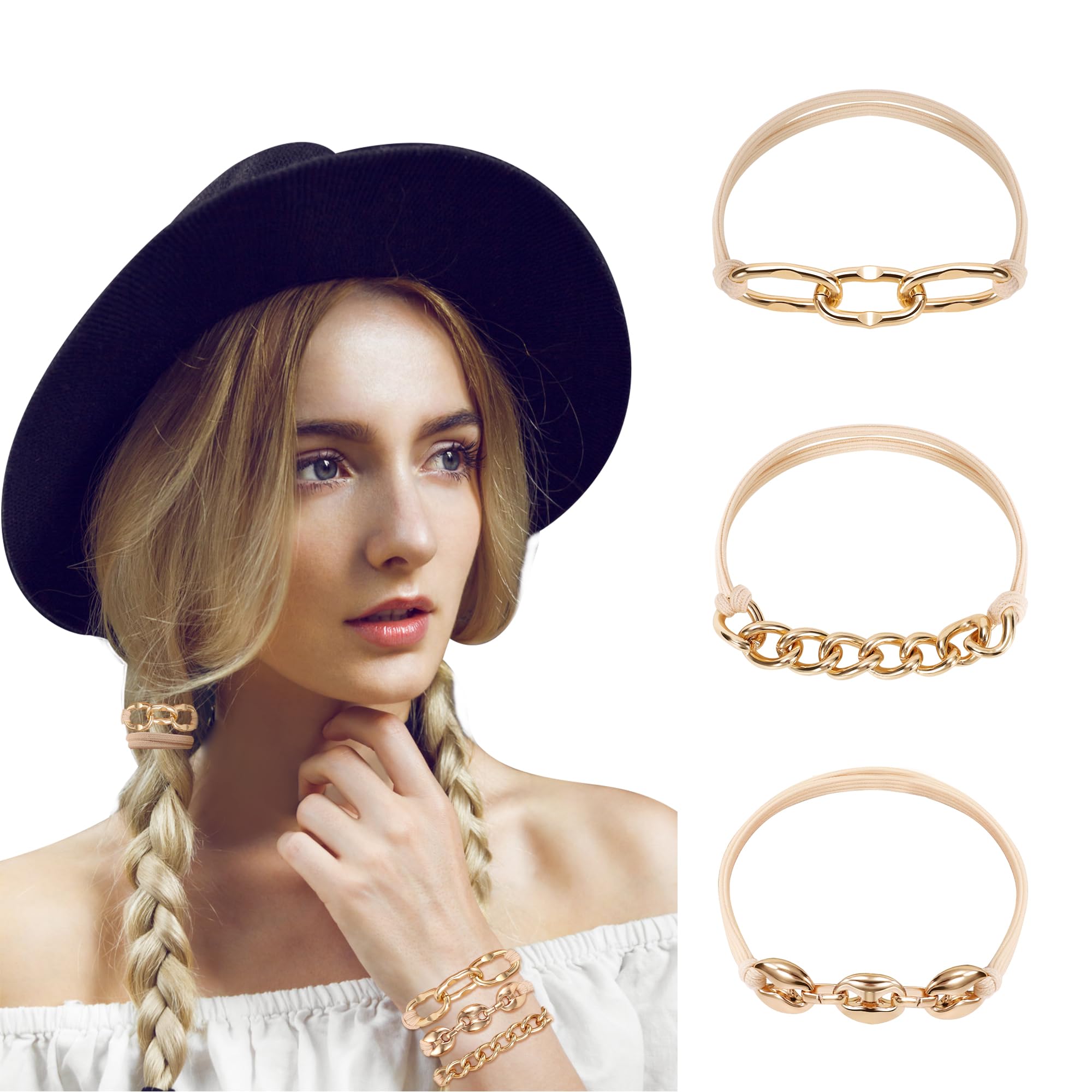 Bracelet Hair Bobbles with Set Girls Fashion Hair Accessories Set of 3 Gold
