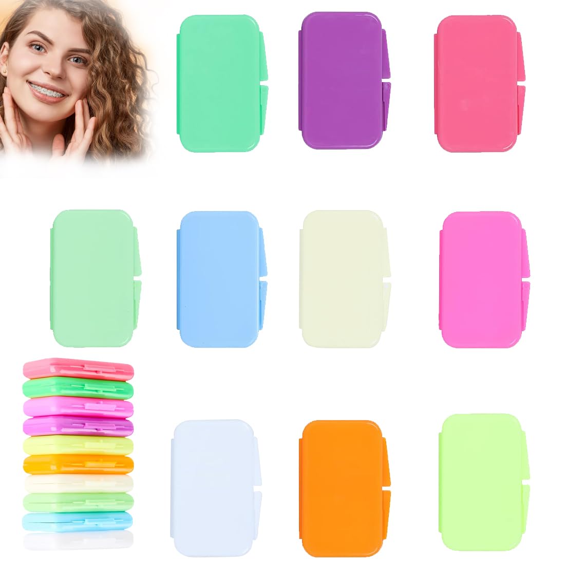 Portability: The braces is small, light and easy to transport and store.You can stow it in your wallet, bag or your case.It is suitable for home, office, school, hiking, camping, travel and other occasions.This is how you protect your cheeks, lips and gums everywhere.Application tips: 1. Take out the desired amount of tooth wax.2. Knead it into a small ball and rub it between your fingers until it reaches a formible or sticky consistency.3. Glue it to those affected.The tooth wax was specially developed to stay in place and not slip.If the wax is too soft, you can put it in the fridge for 5 minutes.Food -safe material: The tooth wax for braces is made of food -safe material, is absolutely safe, free of chemicals, odorless, waterproof, waterproof and easy to apply.It can be easily attached to your braces or aligners and melts with the teeth so that it is invisible.Relief and protection: Braces wax offers relief and protection for people who wear braces.It protects against the irritation of the oral tissue through braces and aligner cuts, and relieves irritations and pain of ribbons, ligatures, wires, feathers and brackets to give them a pleasant feeling.Package content: A box of braces contains 5 pieces, and there are a total of 10 boxes.Contains 10 different fruit taste directions to meet your needs. (Mint, simple, mandarins, grapes, osmanthus, strawberry, roses, pineapple, apples, lemons) The sufficient amount of tooth wax enables you to use long -term and ensures healthy oral hygiene.(Note: Remove the wax before eating and change it after eating).PORTABILITÄT : Das Zahnspangenwachs Ist Klein, Leicht Und Einfach Zu Transportieren Und Aufzubewahren. Sie Können Es In Ihrer Geldbörse, Tasche Oder Ihrem Etui Verstauen. Es Eignet Sich Für Zuhause, Büro, Schule, Wandern, Camping, Reisen Und Andere Gelegenheiten. So Schützen Sie Ihre Wangen, Lippen Und Zahnfleisch Immer Und Überall. ANWENDUNGSTIPPS : 1. Nehmen Sie Die Gewünschte Menge Zahnwachs Heraus. 2. Kneten Sie Es Zu Einer Kleinen Kugel Und Reiben Sie Es Zwischen Ihren Fingern, Bis Es Eine Formbare Oder Klebrige Konsistenz Erreicht. 3. Kleben Sie Es Auf Die Betroffenen Stellen. Das Zahnwachs Wurde Speziell Entwickelt, Um An Ort Und Stelle Zu Bleiben Und Nicht Abzurutschen. Falls Das Wachs Zu Weich Ist, Können Sie Es Für 5 Minuten In Den Kühlschrank Legen. LEBENSMITTELECHTES MATERIAL : Das Zahnwachs Für Zahnspangen Besteht Aus Lebensmittelechtem Material, Ist Absolut Sicher, Chemikalienfrei, Geruchsneutral, Wasserfest Und Leicht Aufzutragen. Es Lässt Sich Problemlos An Ihre Zahnspange Oder Aligner Anbringen Und Verschmilzt Mit Den Zähnen, Sodass Es Unsichtbar Ist. LINDERUNG UND SCHUTZ : Zahnspangenwachs Bietet Erleichterung Und Schutz Für Personen, Die Zahnspangen Tragen. Es Schützt Vor Reizungen Des Mundgewebes Durch Zahnspangen Und Aligner-Schnitte, Und Lindert Irritationen Und Schmerzen Von Bändern, Ligaturen, Drähten, Federn Und Klammern, Um Ihnen Ein Angenehmes Gefühl Zu Geben. Packungsinhalt : Eine Schachtel Mit Zahnspangenwachs Enthält 5 Stück, Und Insgesamt Gibt Es 10 Schachteln. Enthält 10 Verschiedene Fruchtgeschmacksrichtungen, Um Ihren Bedürfnissen Gerecht Zu Werden.(Minze, Schlicht, Mandarine,Trauben, Osmanthus, Erdbeere, Rosen, Ananas, Äpfel, Zitronen)Die Ausreichende Menge An Zahnwachs Ermöglicht Ihnen Eine Langfristige Verwendung Und Sorgt Für Eine Gesunde Mundhygiene. (Hinweis: Entfernen Sie Das Wachs Vor Dem Essen Und Wechseln Sie Es Nach Dem Essen).Zahnspangen Wachs, Zahnwachs Für Zahnspange, 50 Streifen Dentalwachs, Kieferorthopädisches Zahnwachs, Kieferorthopädisches Wachs Für Zahnspangen, Schützen Sie Ihre Mundzähne Vor Reibung,10 Geschmack