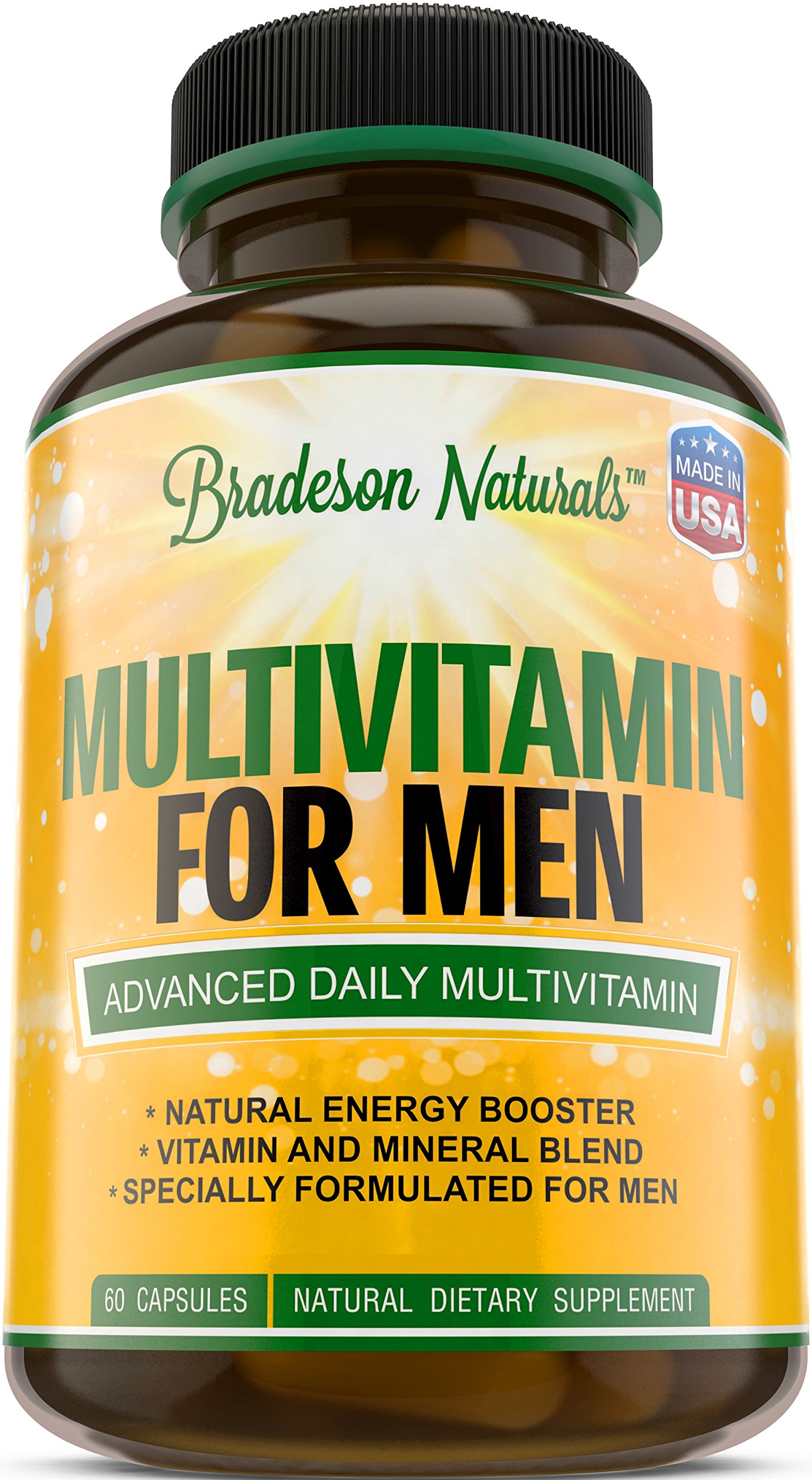 Bradeson Naturals Men's Multivitamin Supplement for Energy Focus and Performance. Mens Vitamins A C D E & B12 Zinc Calcium Magnesium & More. Multi Vitamin 60 Capsules Made in The USA