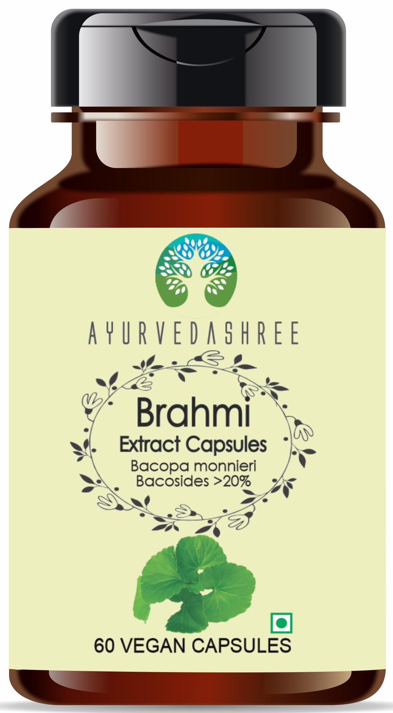 Brahmi Extract 500mg - 60 Vegetarian Capsules|Bacopa Monnieri Bacosides| All Natural | 100% Vegan | Gluten-Free. Brahmi 60 Count (Pack of 1)