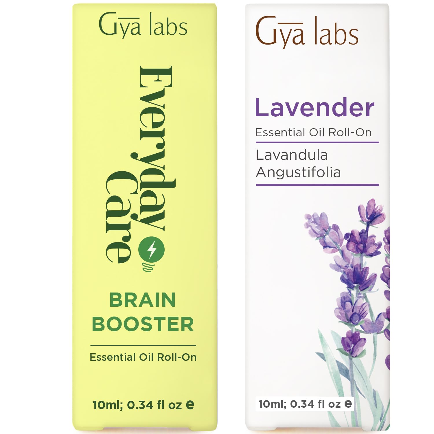 Brain Booster & Lavender Roll On Set - Essential Oils Aromatherapy Roll On with Essential Oil Set - 2x0.34 fl oz - Gya Labs