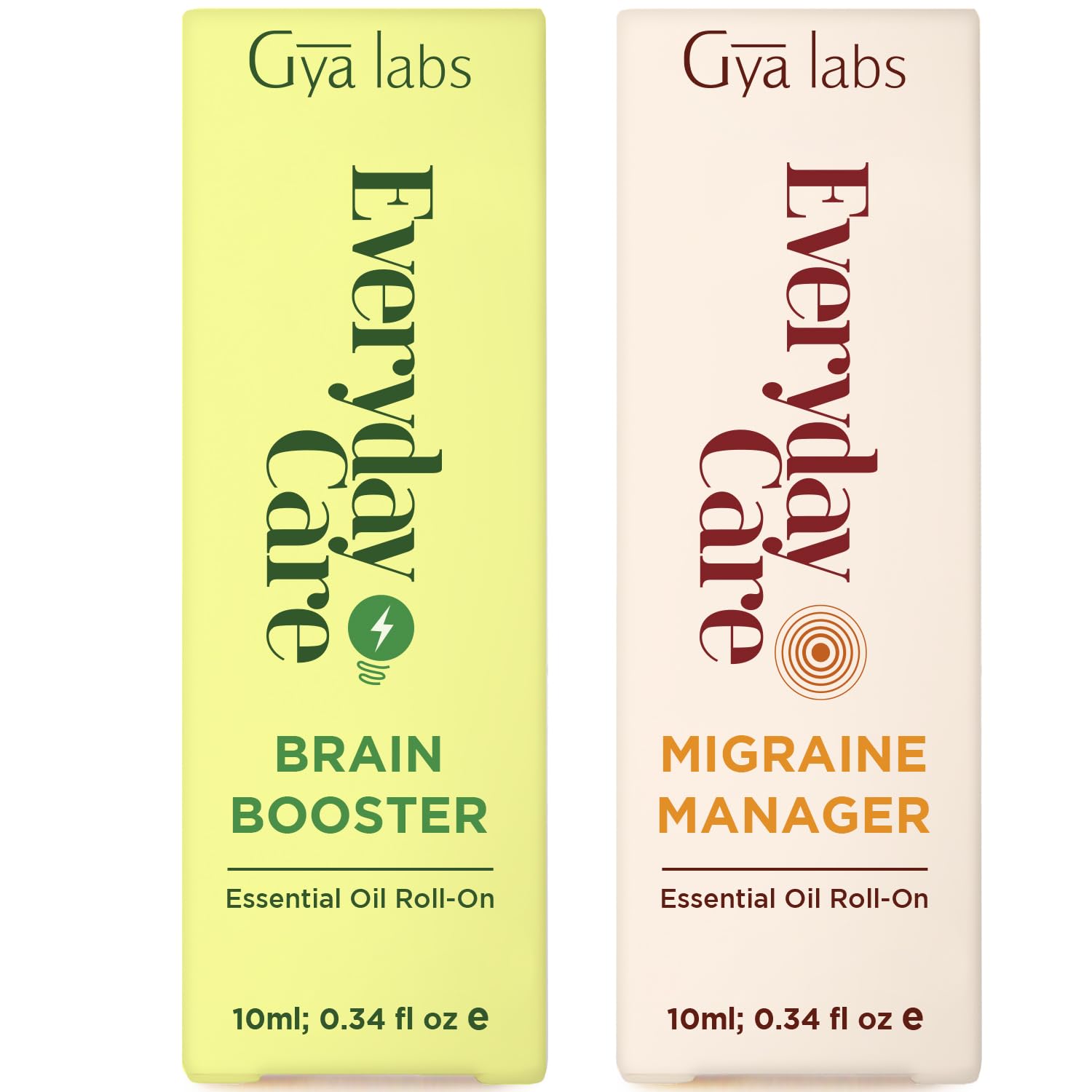 Brain Booster & Migraine Manager Set - Essential Oils Aromatherapy Roll On with Essential Oil Set - 2x0.34 fl oz - Gya Labs