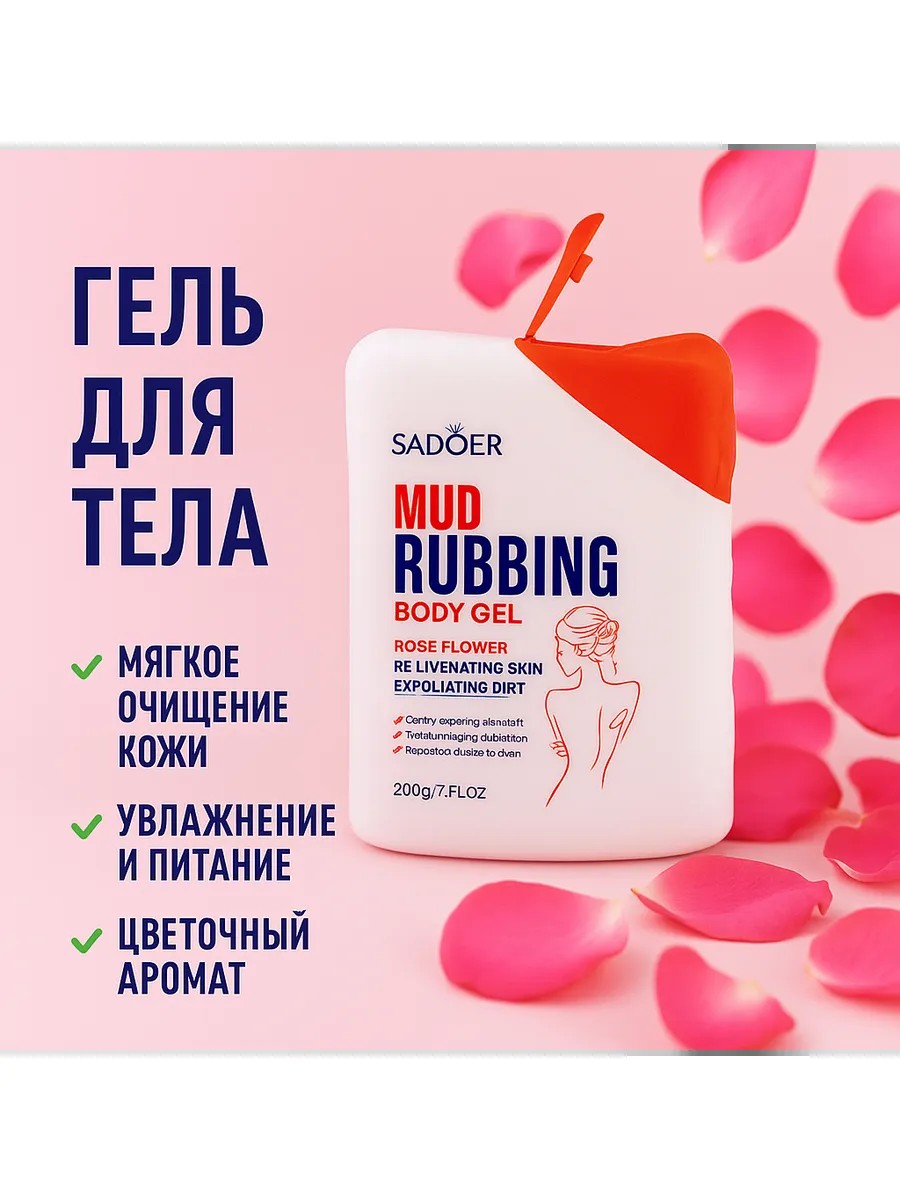 SADOER Mud Rubbing Body Gel with Rose Extract is an innovative body peeling gel that gently cleanses the skin, removes dead skin cells, and leaves you feeling refreshed.
